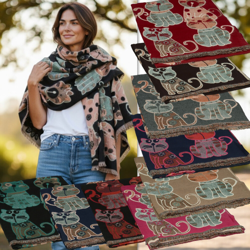 Zachumlejte se do hebkosti a dobré nálady! Tato oboustranná šála z vlny a akrylu je doslova pozvánkou do kočičí říše plné barev a pohody. Z jedné strany ji zdobí veselé kočky na tmavším podkladu, z druhé působí jemněji a světleji. Ideální, když chcete měnit styl podle nálady. Krátké třásně na koncích dodávají šále rozverný dotek. Měkoučká, hřejivá a s dávkou kočičí elegance, dokonalý doplněk pro každou milovnici originality i zvířecího kouzla. Objednejte ještě dnes a vyzkoušejte, vrátit ji můžete až do 30 dnů!