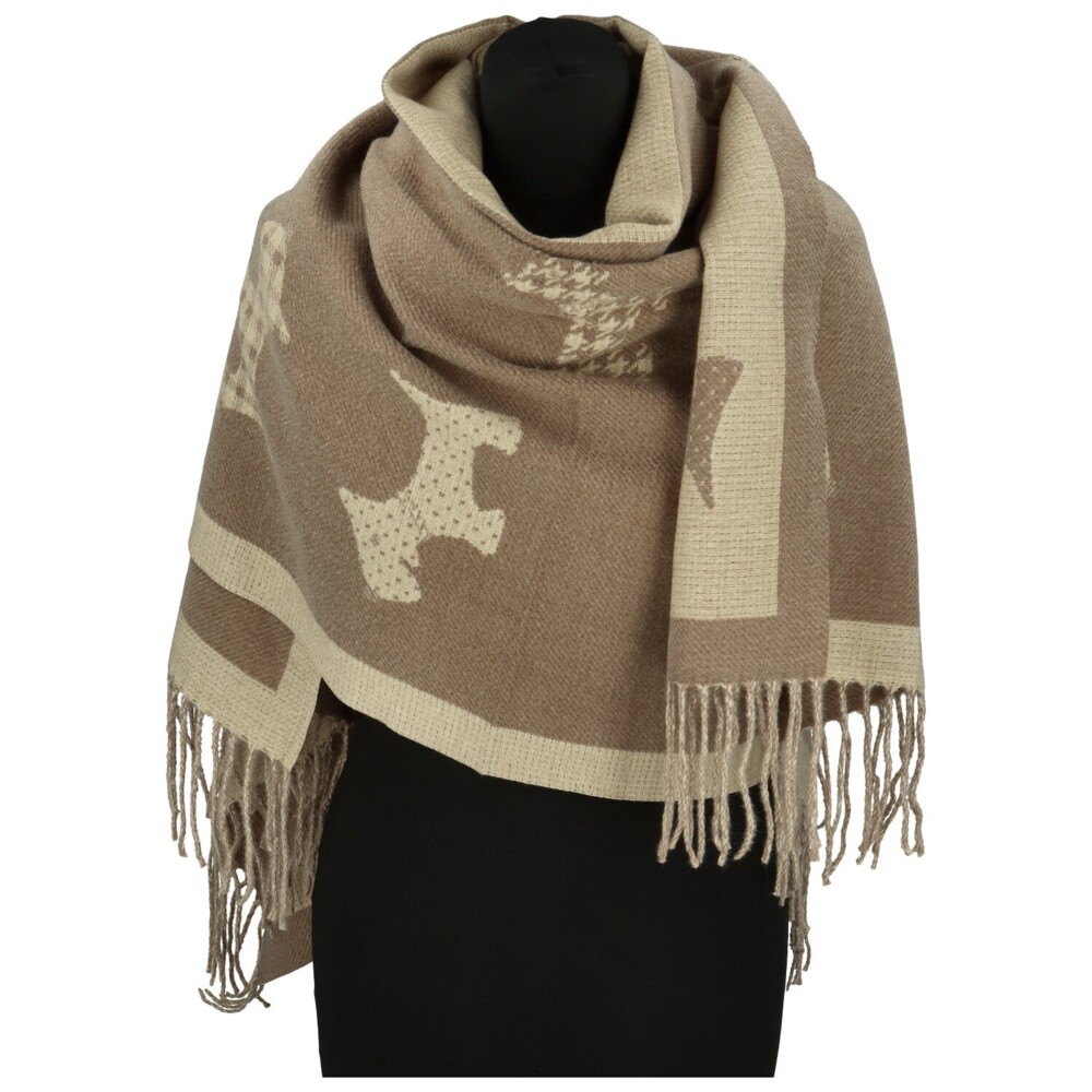 Elegantní šála z jemného kašmíru s příměsí hedvábí potěší nejen milovnice originality. Zdobí ji opakující se motiv psa, který dodává doplňku hravý, ale zároveň sofistikovaný vzhled. Díky oboustrannému provedení můžete snadno měnit styl. Jedna strana má tmavší základ se světlým vzorem, druhá naopak působí světle a jemně. Třásně na koncích podtrhují její lehkost a nadčasový šarm. Ideální pro doladění outfitu i jako stylový dárek pro milovnice zvířat. Objednejte ještě dnes a vyzkoušejte, vrátit ji můžete až do 30 dnů!