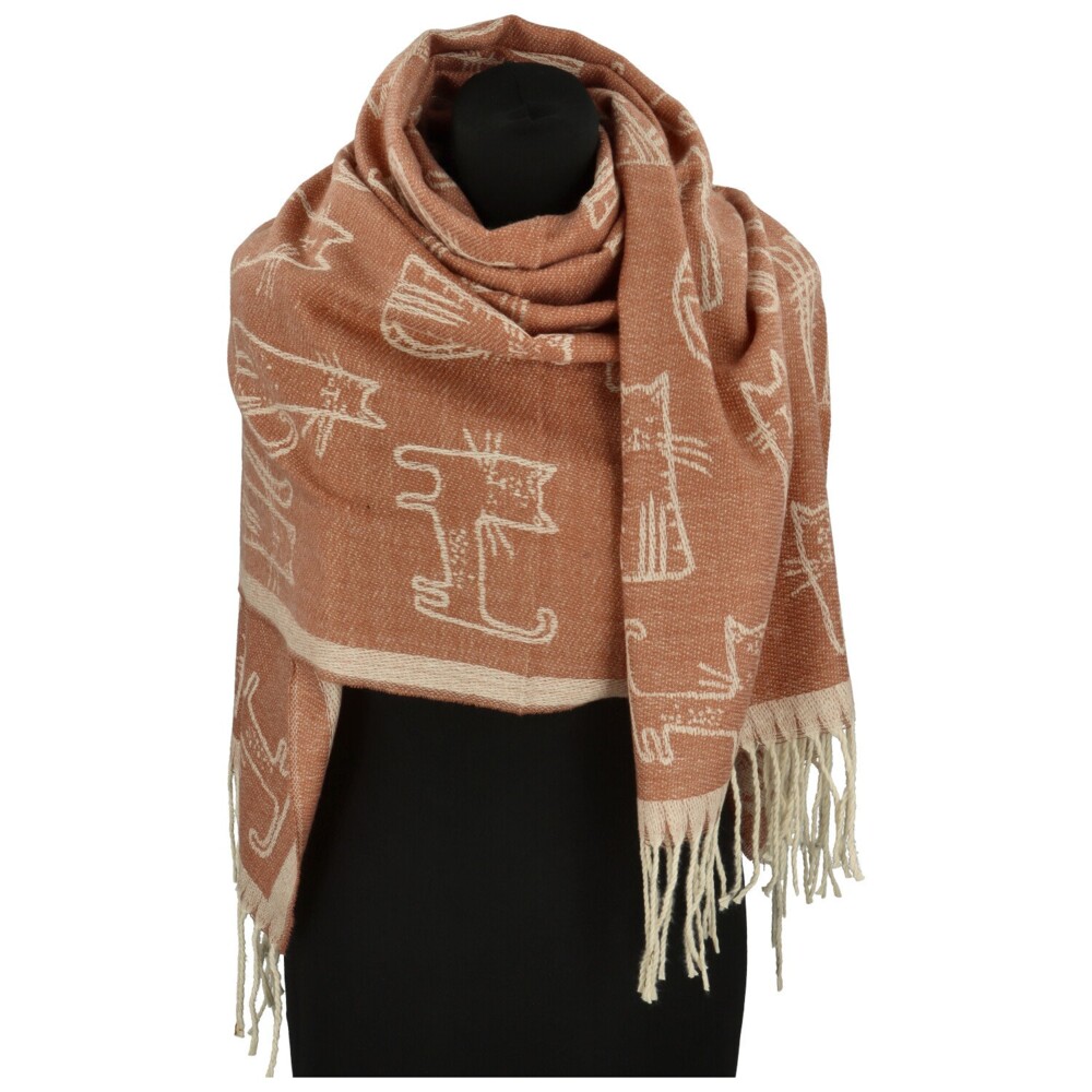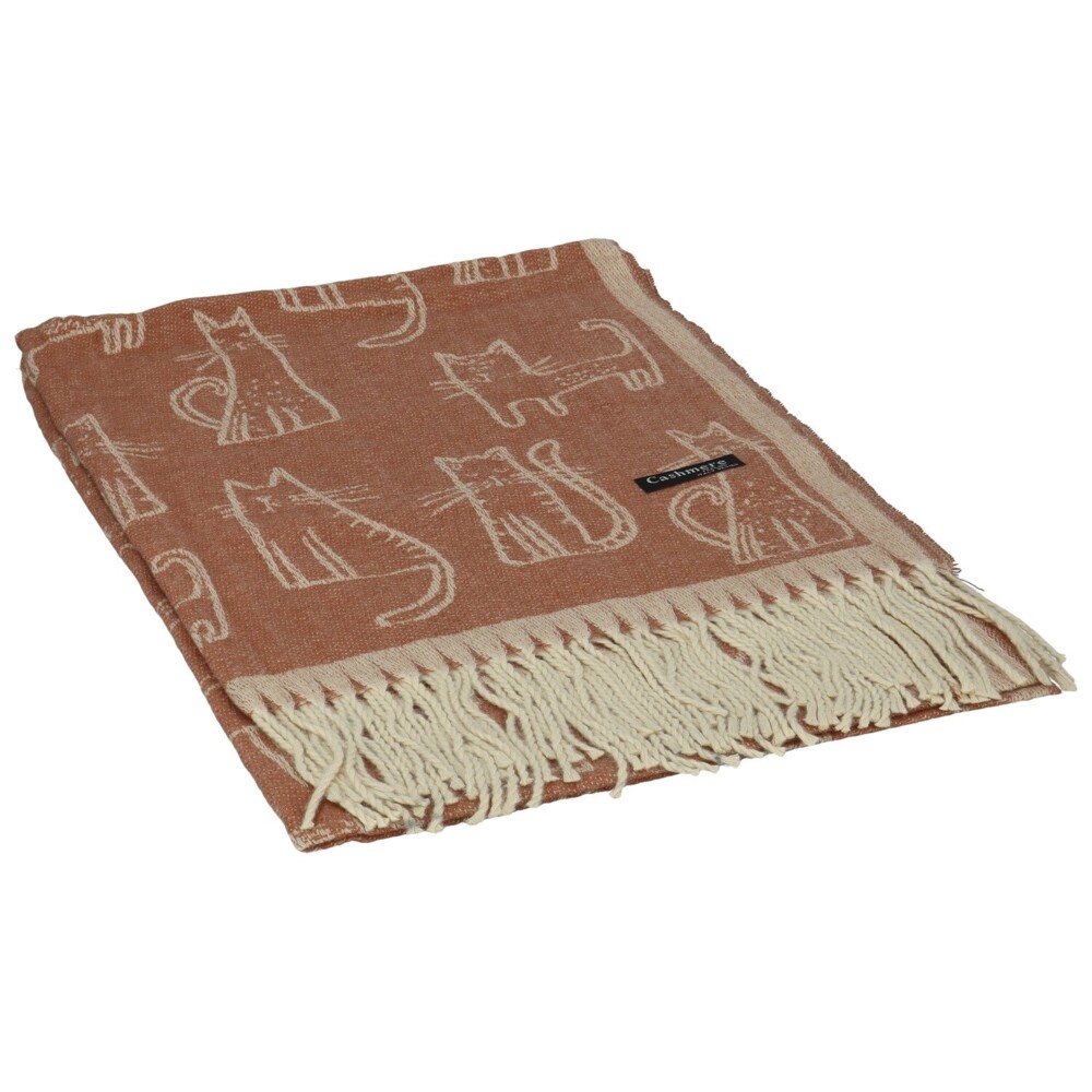 Roztomilá oboustranná šála z kašmíru s příměsí akrylu potěší všechny milovnice koček i originálních doplňků. Po celé šále ji zdobí hravý motiv koček. Z jedné strany vyniká tmavý podklad se světlými siluetami, z druhé se barvy obrátí a vzniká jemnější, svěží efekt. Bílé třásně na koncích krásně kontrastují s barvami šály a dodávají jí lehkost i šmrnc. Měkká, hebká a hřejivá, ideální společník do chladných dnů s nádechem hravé elegance. Objednejte ještě dnes a vyzkoušejte, vrátit ji můžete až do 30 dnů!