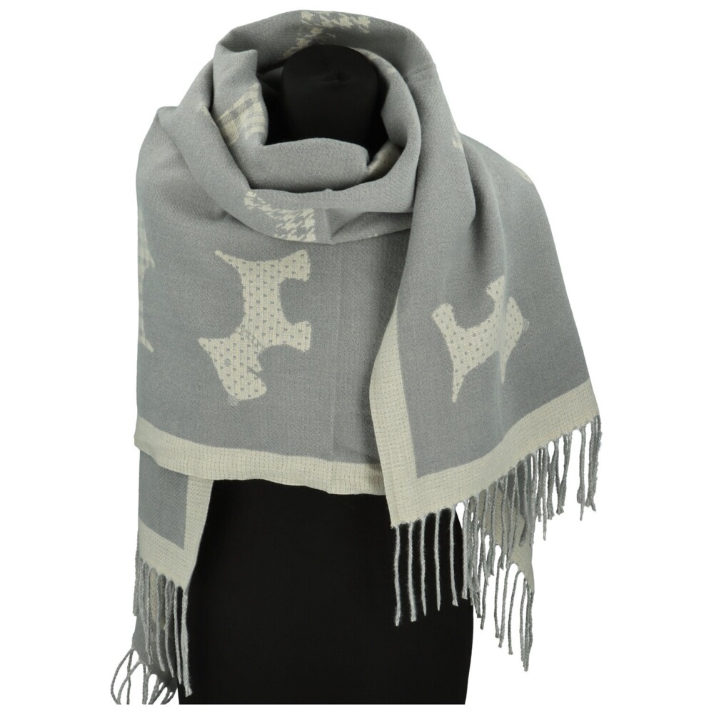 Elegantní šála z jemného kašmíru s příměsí hedvábí potěší nejen milovnice originality. Zdobí ji opakující se motiv psa, který dodává doplňku hravý, ale zároveň sofistikovaný vzhled. Díky oboustrannému provedení můžete snadno měnit styl. Jedna strana má tmavší základ se světlým vzorem, druhá naopak působí světle a jemně. Třásně na koncích podtrhují její lehkost a nadčasový šarm. Ideální pro doladění outfitu i jako stylový dárek pro milovnice zvířat. Objednejte ještě dnes a vyzkoušejte, vrátit ji můžete až do 30 dnů!