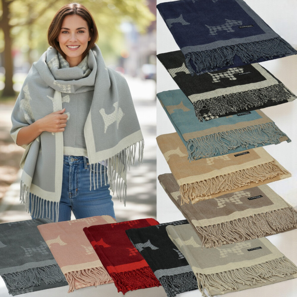 Elegantní šála z jemného kašmíru s příměsí hedvábí potěší nejen milovnice originality. Zdobí ji opakující se motiv psa, který dodává doplňku hravý, ale zároveň sofistikovaný vzhled. Díky oboustrannému provedení můžete snadno měnit styl. Jedna strana má tmavší základ se světlým vzorem, druhá naopak působí světle a jemně. Třásně na koncích podtrhují její lehkost a nadčasový šarm. Ideální pro doladění outfitu i jako stylový dárek pro milovnice zvířat. Objednejte ještě dnes a vyzkoušejte, vrátit ji můžete až do 30 dnů!
