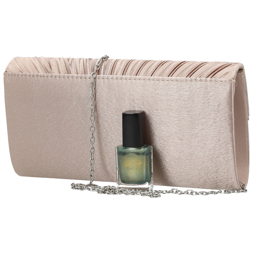 Psaníčko je jako stvořené pro večery, kdy chcete působit lehce, elegantně a neodolatelně. Jeho povrch pokrývá jemně třpytivá textilie, která vytváří působivou záři i při tom nejmírnějším pohybu. Klopa je zdobená jemným řasením a je zakončená tenkým kovovým proužkem dodávajícím psaníčku uhlazený a luxusní vzhled. Zavírání na magnetický druk je pohodlné a praktické. Uvnitř se urývá přesně tolik prostoru, kolik potřebujete na ples nebo slavnostní večer. Ke kabelce patří také kovový řetízek na připnutí, díky kterému ji můžete nosit i přes rameno. Objednejte ještě dnes a vyzkoušejte, vrátit jej můžete až do 30 dnů!