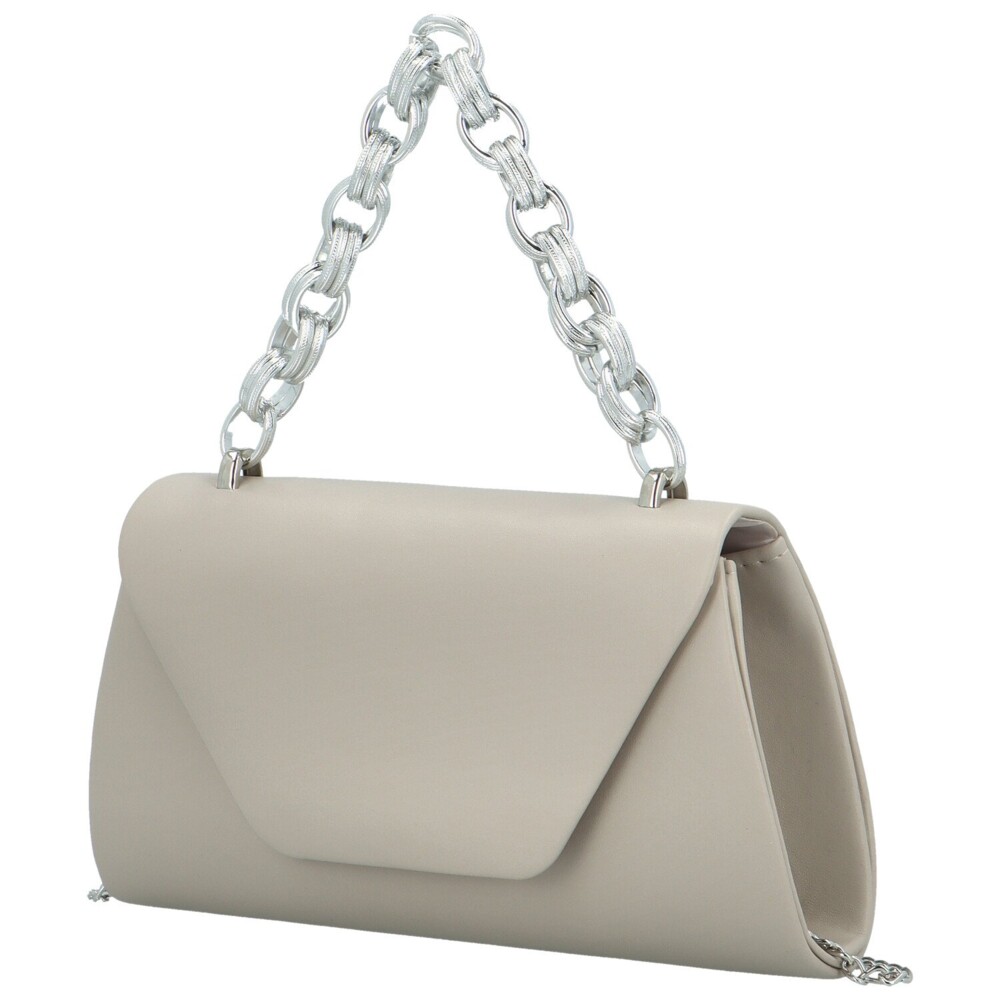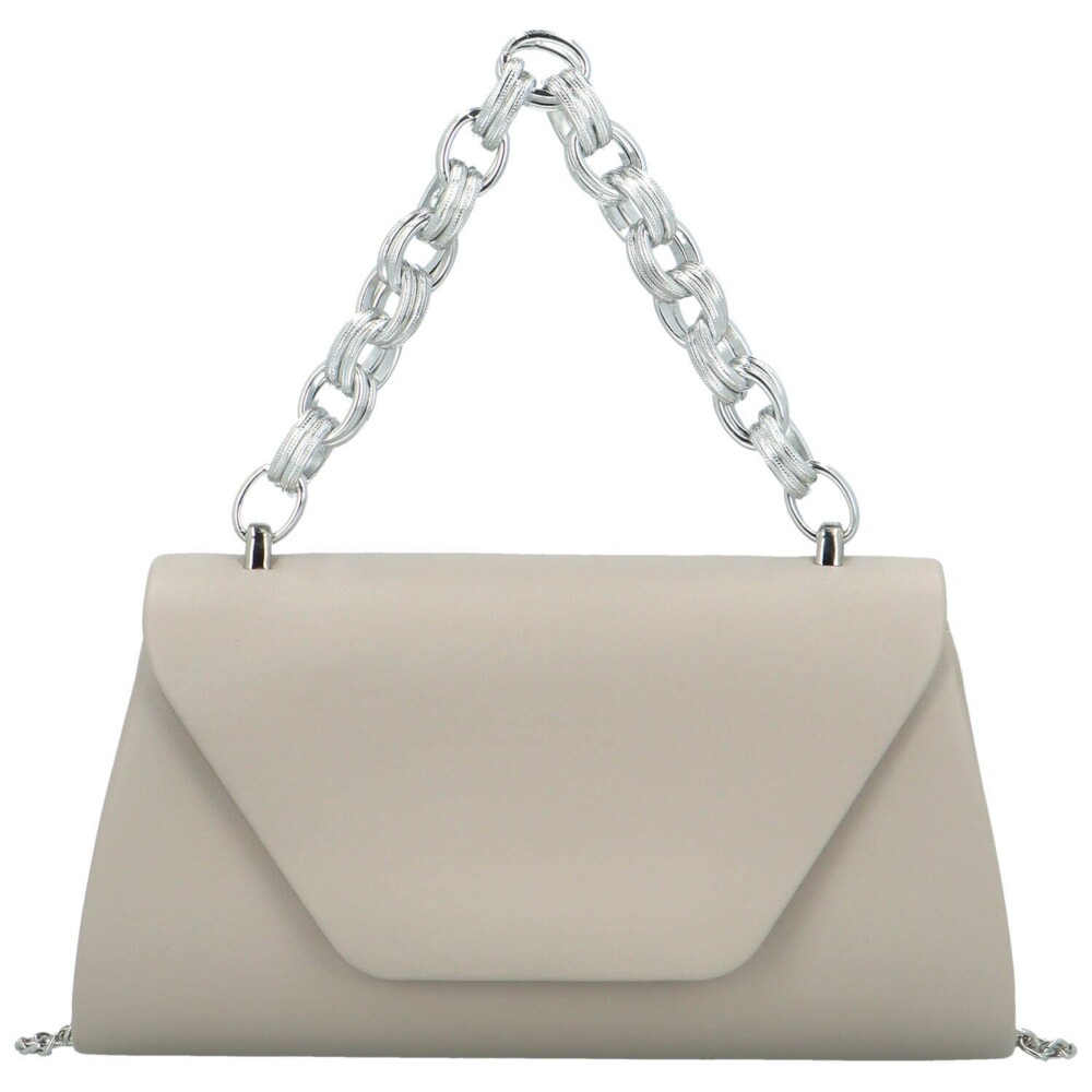 Krásná společenská kabelka z velmi příjemné koženky a s designovým stříbrným řetězem. Kabelka vás zaujme řetízkovým kovovým uchem ve stříbrné barvě, který kabelku vkusně doplní a rozjasní. Otevírá se klopou na magnetický druk. Uvnitř místo pro vaše nejdůležitější věci. Můžete ji nosit v ruce za kovový řetěz a díky dlouhému kovovému řetízku i na rameni. Objednejte ještě dnes a vyzkoušejte, vrátit ji můžete až do 30 dnů!