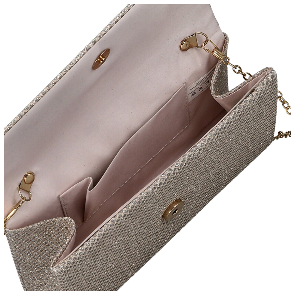 Elegantní psaníčko v klasickém střihu, které rozzáří každý večerní look. Povrch z třpytivé textilie hraje se světlem a dodává kabelce energický, moderní nádech. Klopa na magnetický druk se snadno otevírá a po rozepnutí nabídne místo přesně na to, co chcete mít stále při sobě. Kovový řetízek umožňuje nosit psaníčko na rameni a dodat outfitu ležérní šmrnc, nebo jej vzít do ruky jako výrazný doplněk. Ideální volba pro párty, plesy i speciální příležitosti, kdy chcete zazářit bez kompromisů. Objednejte ještě dnes a vyzkoušejte, vrátit jej můžete až do 30 dnů!