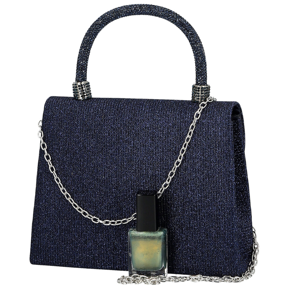 Tato plesová kabelka v kufříkovém střihu je malý luxusní klenot, který rozzáří každý slavnostní outfit. Pevná konstrukce potažená třpytivou textilní působí elegantně a sebevědomě, zatímco ucho do ruky bohatě zdobené kamínky přidává kabelce výrazný šmrnc a šperkový efekt. Zaoblená klopa se zapínáním na magnetický druk ukrývá praktický prostor pro ty nejdůležitější drobnosti, bez kterých se večer neobejdete. Díky odnímatelnému kovovému řetízku můžete kabelku nosit přesně podle nálady - noblesně v ruce nebo ležérně na rameni. Stylový a živý doplněk pro plesy, večírky i výjimečné chvíle, kdy chcete zazářit bez kompromisů. Objednejte ještě dnes a vyzkoušejte, vrátit ji můžete až za 30 dnů!