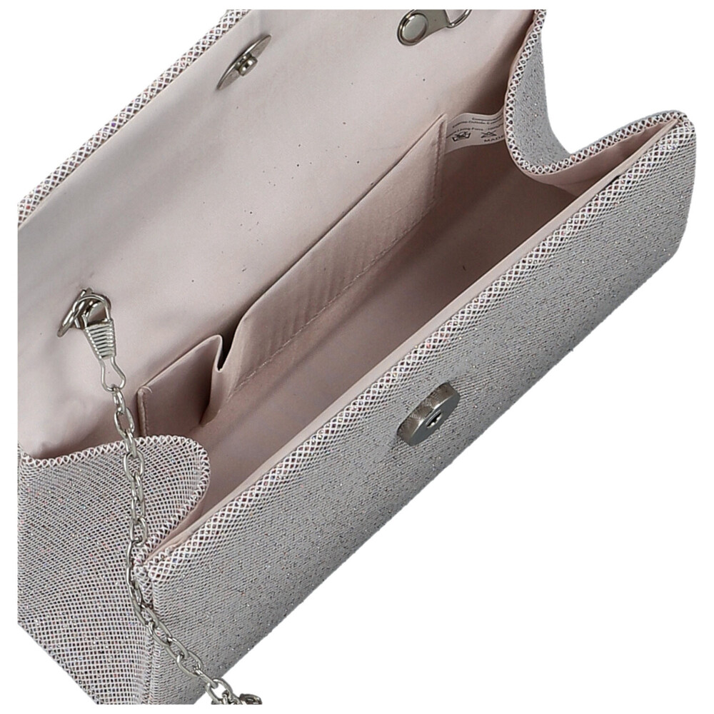 Okouzlující plesové psaníčko v pevném tvaru je přesně ten detail, který promění outfit v nezapomenutelný look. Třpytivá textilie vytváří jemný glamour efekt a krásně vynikne při večerním osvětlení. Originálně střižená klopa se sponou s kamínků působí jako šperk a dodává kabelce luxusní charakter. Magnetické zapínání je nenápadné, ale praktické, a vnitřní prostor pojme všechny nezbytnosti, bez kterých se na společenské akci neobejdete. Kovový řetízek umožňuje pohodlné nošení na rameni, když chcete mít ruce volné. Trendy doplněk pro ženy, které chtějí zářit s lehkostí a stylem. Objednejte ještě dnes a vyzkoušejte, vrátit jej můžete až do 30 dnů!