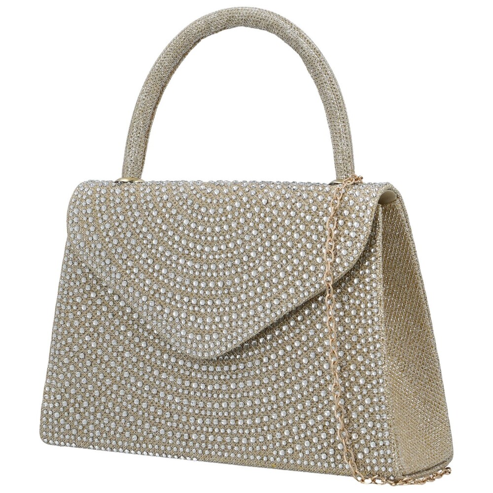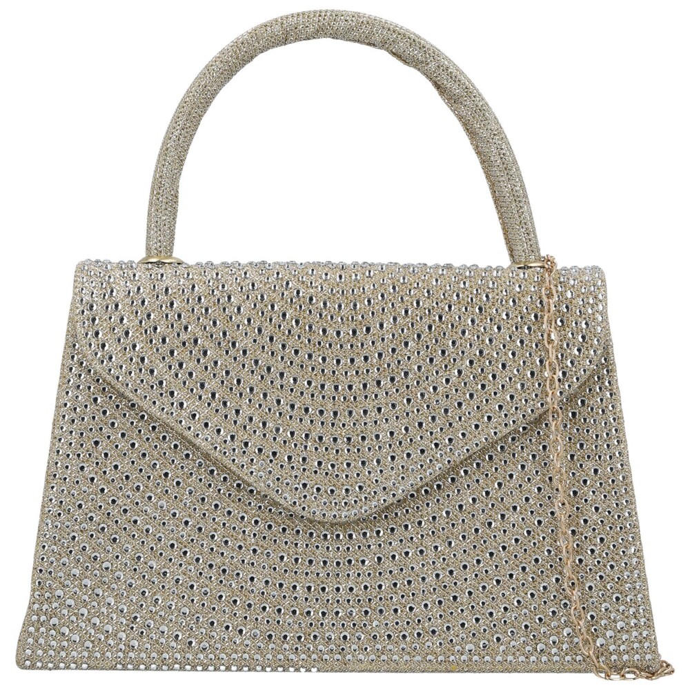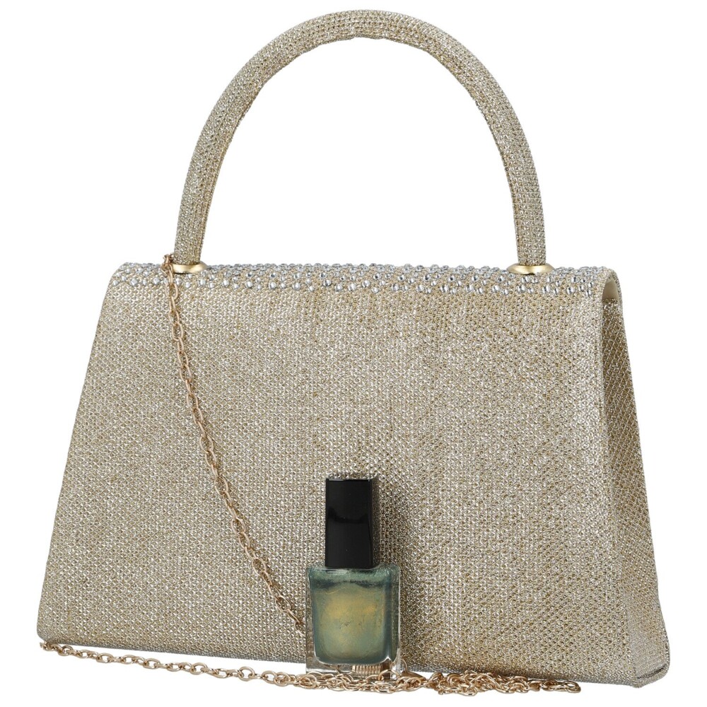 Třpytivá plesová kabelka v kufříkovém stylu okouzlí elegantní klopou do špičky, připomínající obálku, a jemnými třpytivými kamínky na přední straně.. Pevný tvar a ergonomické ucho perfektně padnou do ruky, zatímco magnetický druk zajišťuje bezpečné zavření. Uvnitř najdete prostor pro všechny nejnutnější drobnosti a pro pohodlné nošení přes rameno je součástí dlouhý kovový řetízek. Ideální společník na plesy, večírky a slavnostní události, který dodá vašemu outfitu jiskru. Objednejte ještě dnes a vyzkoušejte, vrátit ji můžete až do 30 dnů!