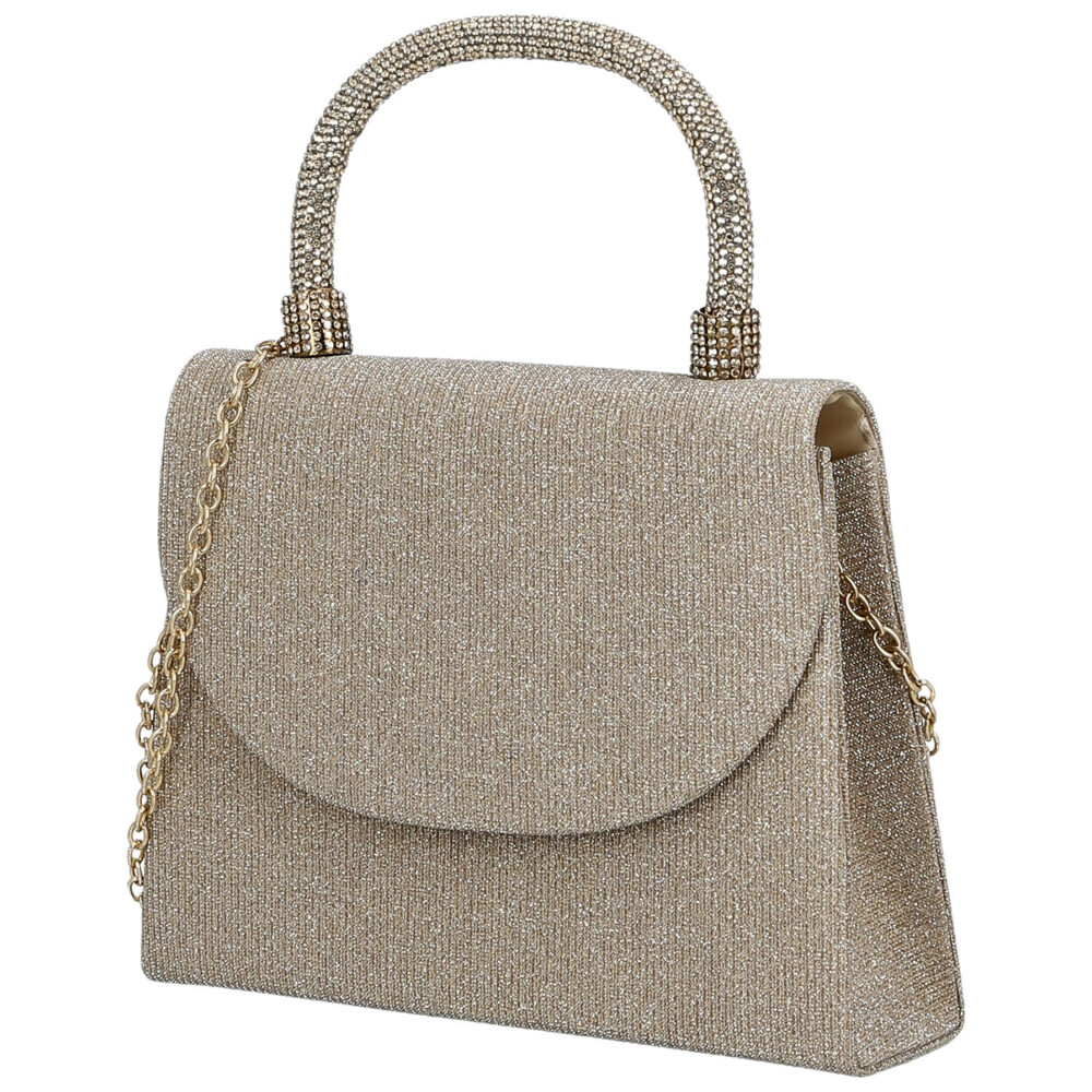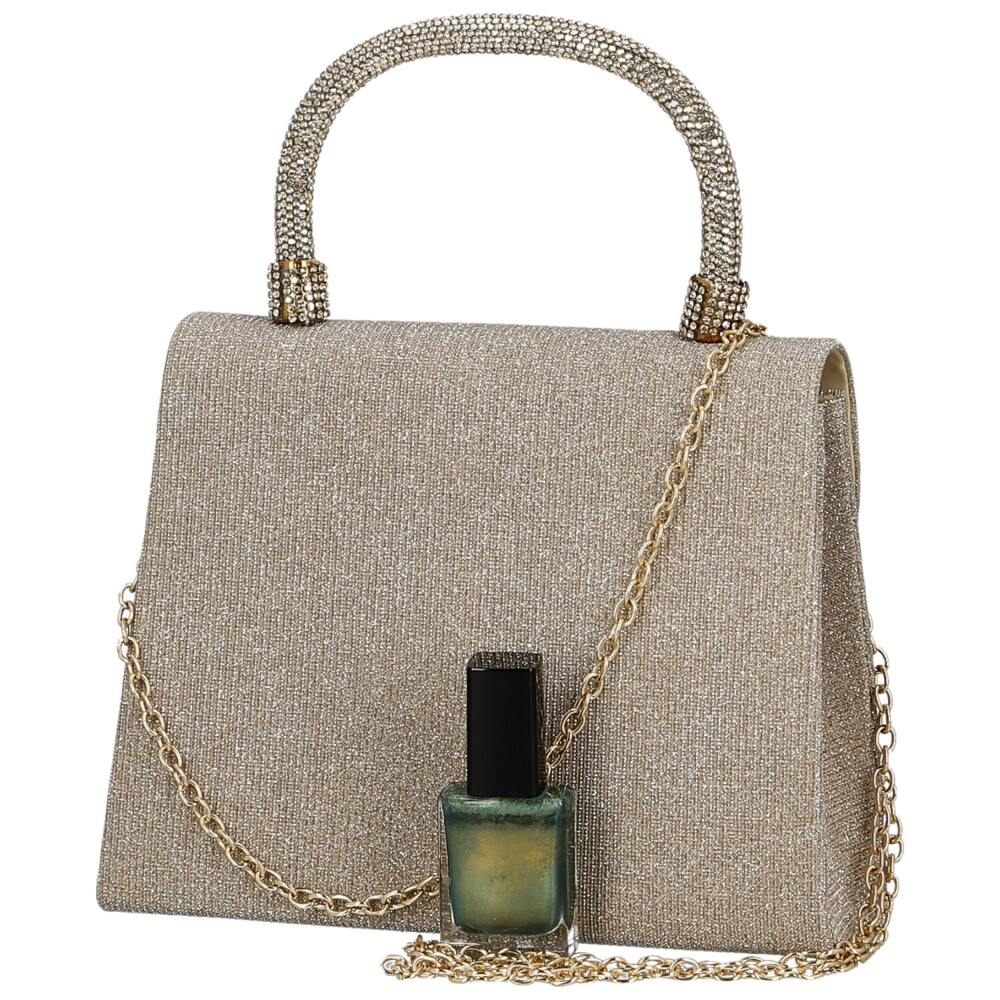 Tato plesová kabelka v kufříkovém střihu je malý luxusní klenot, který rozzáří každý slavnostní outfit. Pevná konstrukce potažená třpytivou textilní působí elegantně a sebevědomě, zatímco ucho do ruky bohatě zdobené kamínky přidává kabelce výrazný šmrnc a šperkový efekt. Zaoblená klopa se zapínáním na magnetický druk ukrývá praktický prostor pro ty nejdůležitější drobnosti, bez kterých se večer neobejdete. Díky odnímatelnému kovovému řetízku můžete kabelku nosit přesně podle nálady - noblesně v ruce nebo ležérně na rameni. Stylový a živý doplněk pro plesy, večírky i výjimečné chvíle, kdy chcete zazářit bez kompromisů. Objednejte ještě dnes a vyzkoušejte, vrátit ji můžete až za 30 dnů!