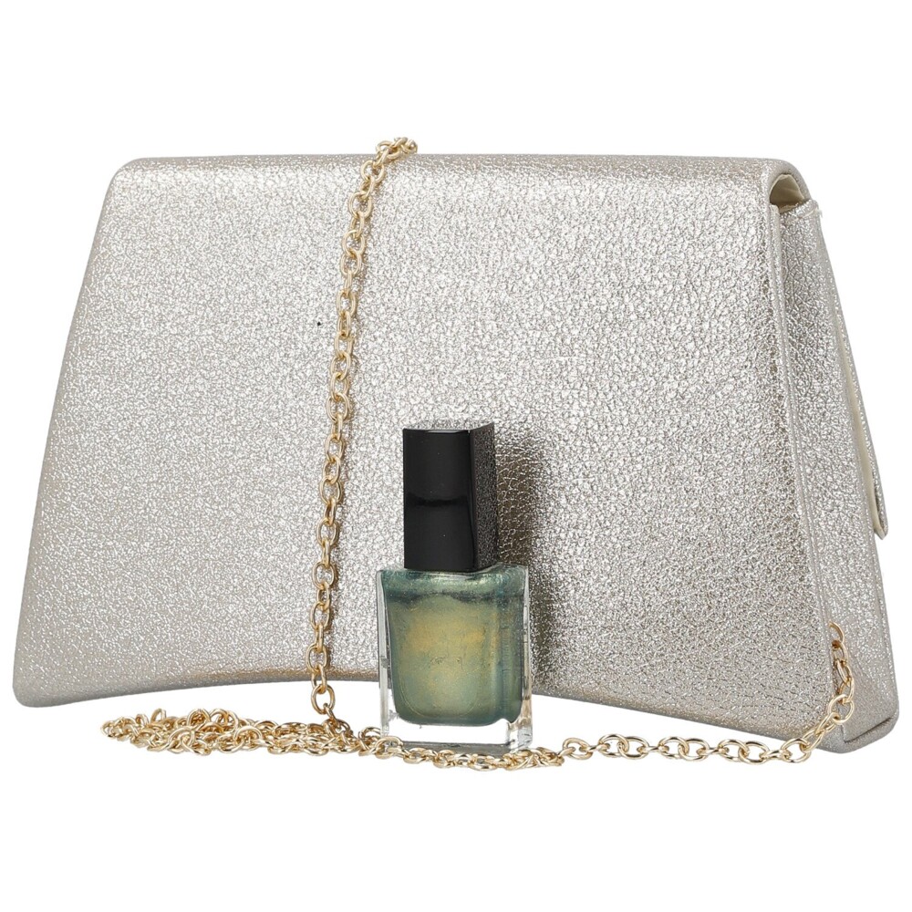 Tato syntetická plesová kabelka je jako kousek jemného zářivého světla, které vám doladí každý slavnostní outfit. Má pevný, dokonale uhlazený tvar a obloukovou klopu, která se uzavírá spolehlivým magnetickým drukem - elegantní, jednoduché a praktické zároveň. Lesklý povrch působí luxusně, ale nevtíravě, a při dopadu světla vytváří jemné odlesky, které kabelku promění v okouzlující šperk. Uvnitř najdete kompaktní, přehledný prostor pro ty nejnutnější drobnosti, které chcete mít během večera stále u sebe. Součástí je i kovový řetízek, který můžete připnout a získat tak pohodlnou možnost nošení přes rameno. Objednejte ještě dnes a vyzkoušejte, vrátit ji můžete až do 30 dnů!
