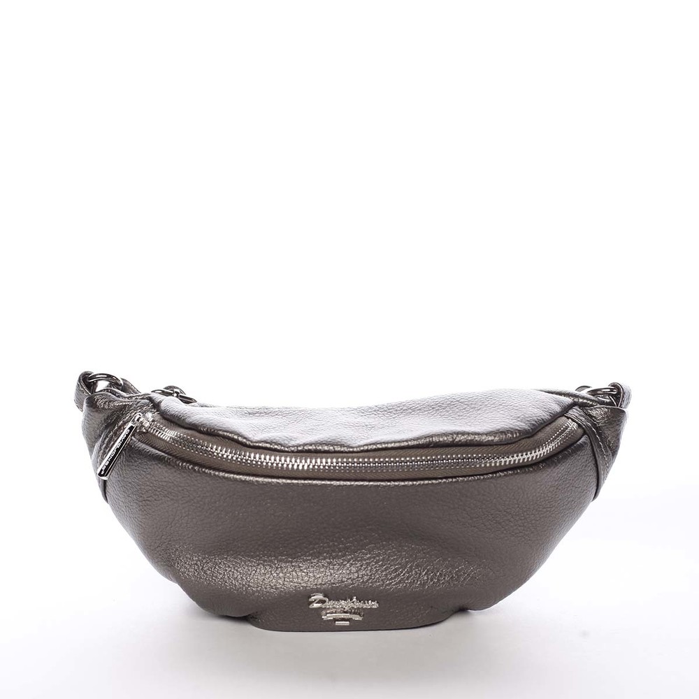 Objednejte tuto novinku na trhu ještě dnes, vyzkoušejte, vrátit ji můžete až za 30 dnů! David Jones Vám představuje dámskou módní ledvinku v tmavě stříbrné barvě a stylovém designu. Tuto koženkovou kabelku můžete nosit kolem pasu, přes rameno nebo kolem těla, jak je to momentálně v módě. Ledvinka je středních rozměrů, s kovovými sponami a logem značky na předním straně. Popruh je podšitý látkou. Další dvě menší kapsičky se zipy najdete na vnitřní i vnější straně strany zadní.