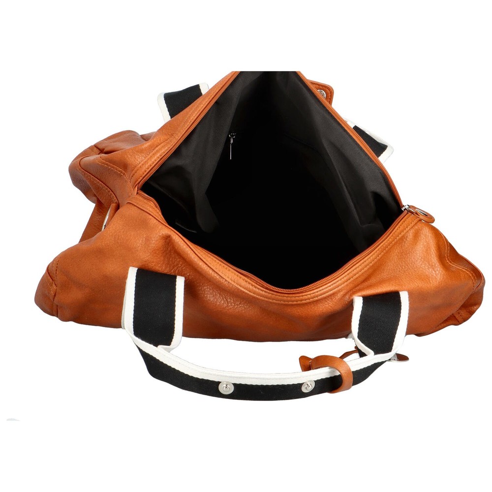 Objednejte tuto novinku na trhu ještě dnes, vyzkoušejte, vrátit ji můžete až za 30 dnů! Módně sportovní taška ve hnědé barvě se stane ideální partnerkou do práce, do města i za sportem. Kabelka se nosí v ruce nebo přes rameno s látkovým popruhem. Je velká a proto zde uložíte vše, co potřebujete. Hlavní kapsa je klasicky na zip a samozřejmostí jsou kapsičky na drobnosti a cennosti uvnitř i vně tašky. Má krásný oválný design a šmrnc doplňuje bílo černá látka okolo. Bonusem je odnímatelný přívěsek v podobě kovové placky s logem značky na syntetickém pásku.