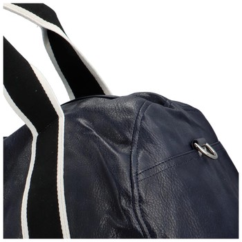 Objednejte tuto novinku na trhu ještě dnes, vyzkoušejte, vrátit ji můžete až za 30 dnů! Módně sportovní taška v tmavě modré barvě se stane ideální partnerkou do práce, do města i za sportem. Kabelka se nosí v ruce nebo přes rameno s látkovým popruhem. Je velká a proto zde uložíte vše, co potřebujete. Hlavní kapsa je klasicky na zip a samozřejmostí jsou kapsičky na drobnosti a cennosti uvnitř i vně tašky. Má krásný oválný design a šmrnc doplňuje bílo černá látka okolo. Bonusem je odnímatelný přívěsek v podobě kovové placky s logem značky na syntetickém pásku.