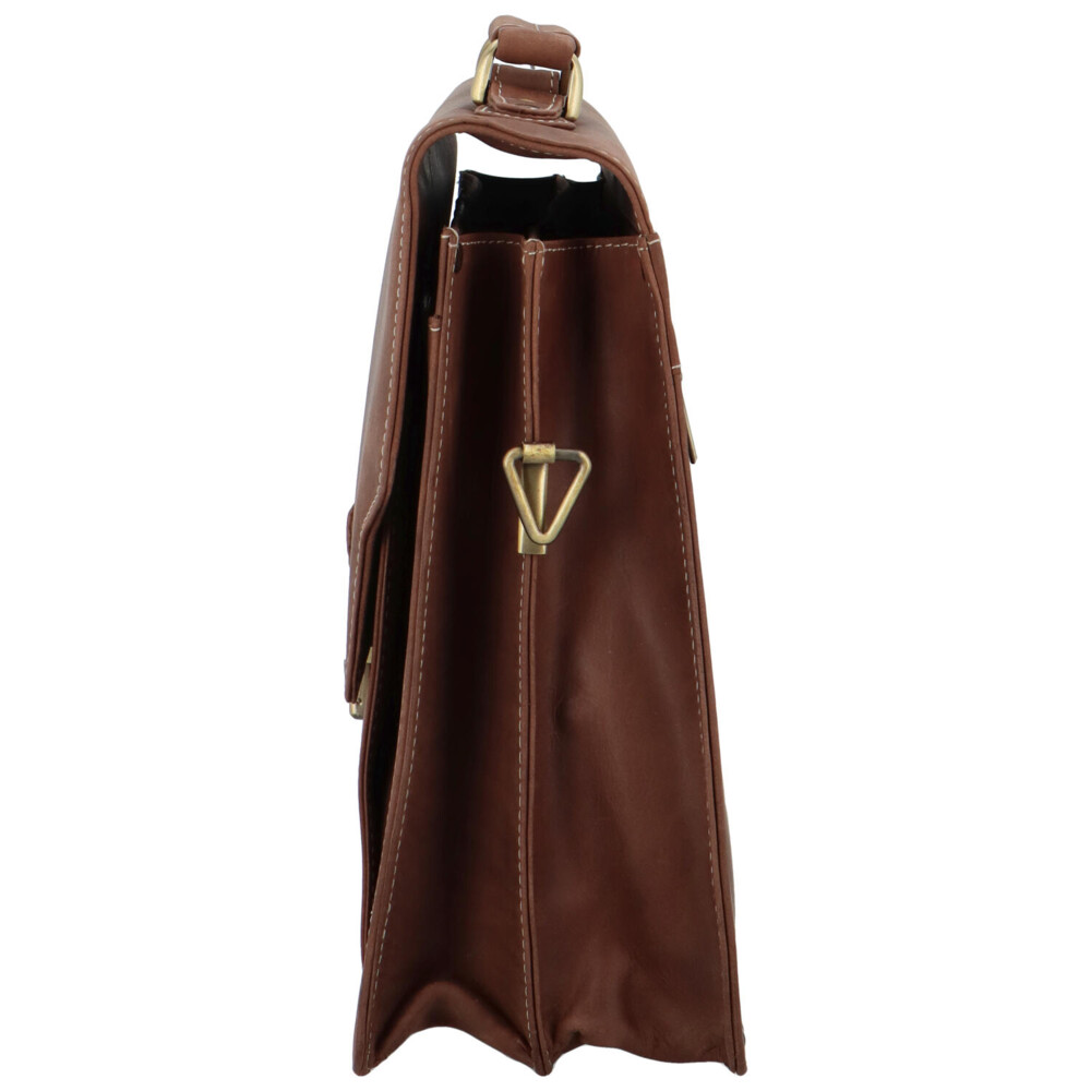 Vánoční novinka! Krásná pánská aktovka z kůže ve hnědé broušené variantě přivodí tu správnou pracovní atmosféru. Objednejte ještě dnes a vyzkoušejte, vrátit ji můžete až za 30 dnů! Stabilní jemná brašna do práce, na spisy a notebook (rozměry na dotaz) se pyšní zajímavou klopou se světlým prošitím. Otevírá se klasickým patentem/sponou uzamykatelnou klíčkem. Nosit ji lze samozřejmě za ploché dvojitě kožené ucho, ale také pomocí celokoženého popruhu i s ramenním krytím. Pod klopou je středně velká kapsa na osobní věci, dvě hlavní úložiště z nich jedno poslouží i jako organizér na telefon, kreditní karty a vizitky, propisky a podobné drobnosti a cennosti. Do druhého uschováte spisy, složky či notebook. Chybět Vám nebude ani zadní kapsa se zipem. Spodní strana disponuje kovovými cvoky, což zajistí stabilitu i problém s odíráním při pokládání.