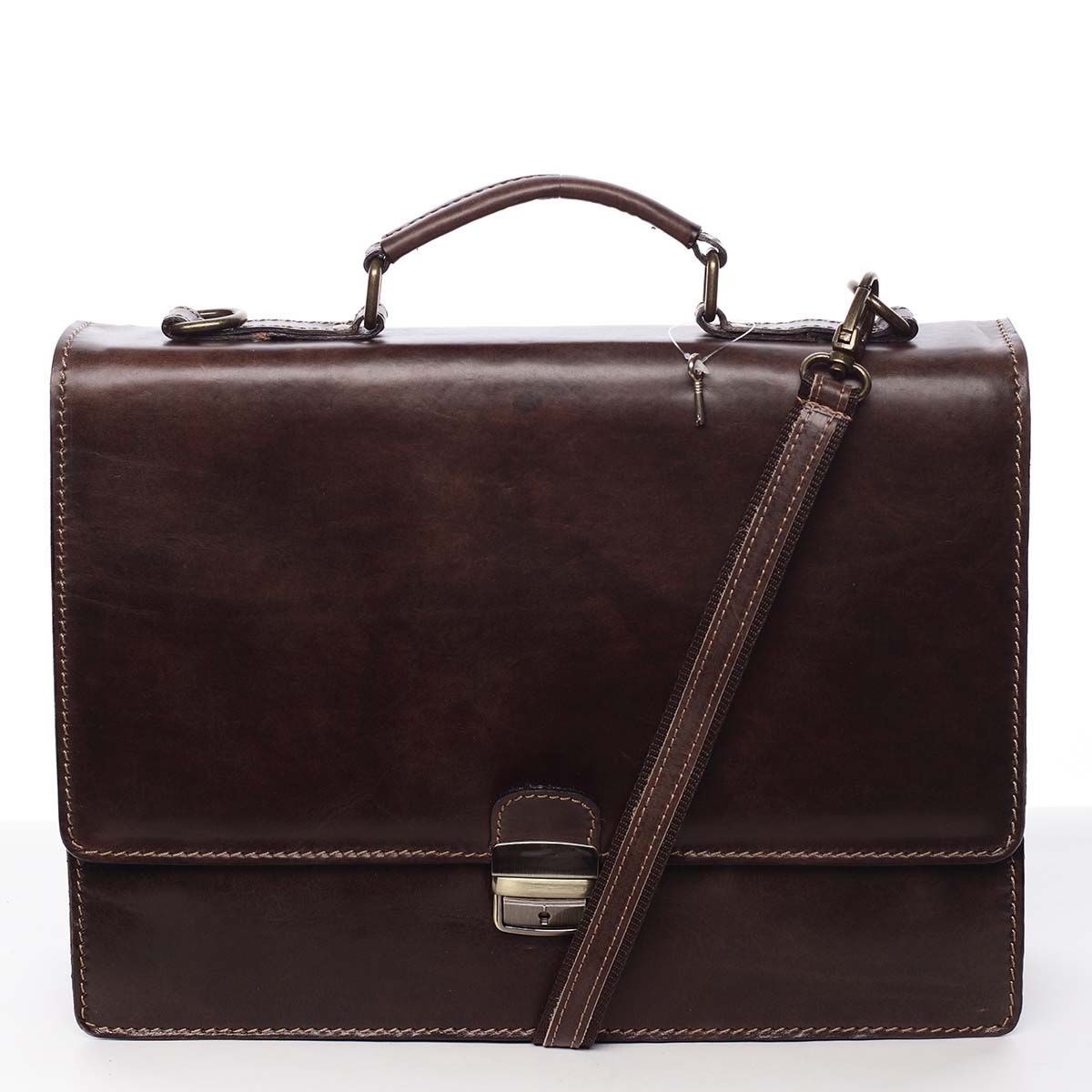 Tmavě hnědá business kožená aktovka ItalY Brad 2