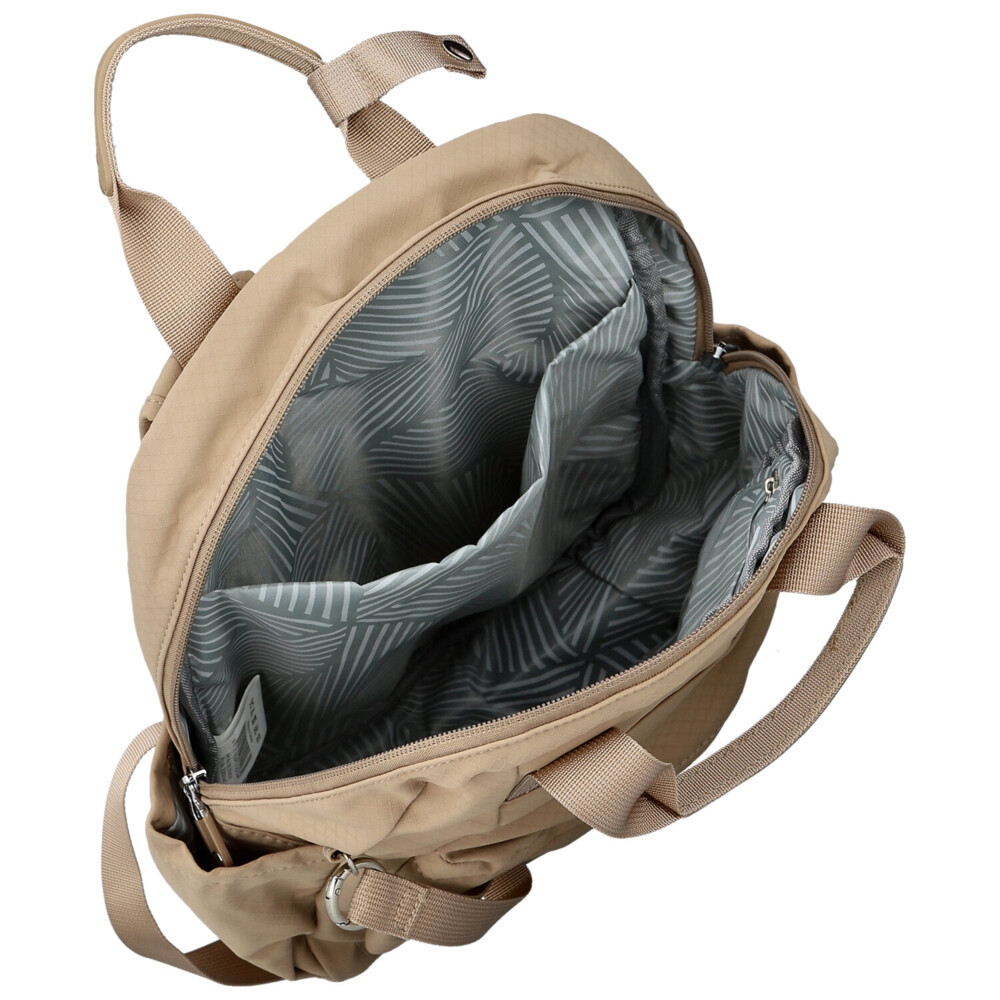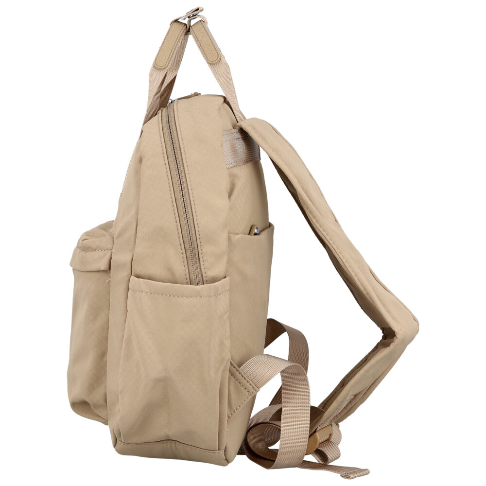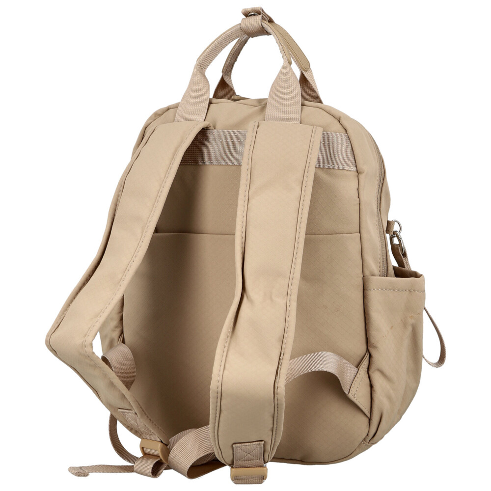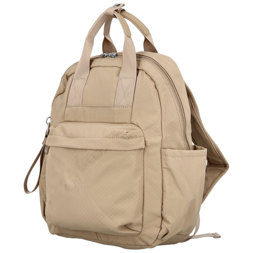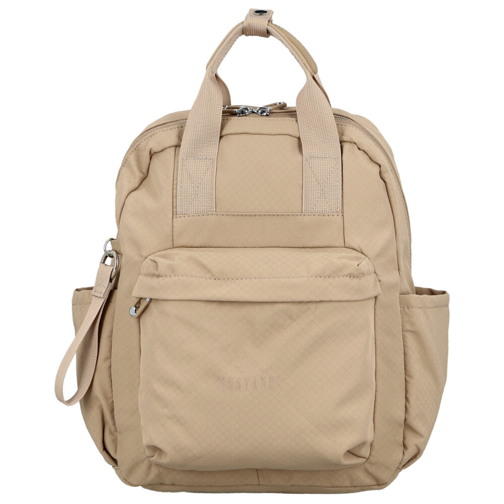 Menší batůžek Mustang z odolné textilie je praktickým a stylovým doplňkem pro každý den. Hlavní prostor na zip nabízí vnitřní postranní přihrádky – jednu na zip a jednu volnou – pro přehledné uložení potřebných drobností. Po bocích batohu se nacházejí dvě menší otevřené přihrádky, ideální například na kapesníčky nebo malé lahve.