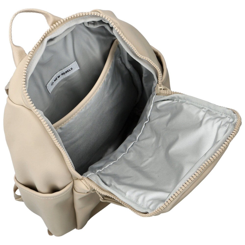 Moderní pogumovaný batoh New Rebels se zaobleným vrchem nabízí stylové provedení a praktické uspořádání pro každodenní použití. Hlavní prostor se otevírá kvalitním zipem a uvnitř se nachází přihrádka na laptop, která bezpečně odděluje vaše zařízení od ostatních věcí. Na přední straně batohu je menší kapsa na zip, ideální pro drobnosti, ke kterým potřebujete rychlý přístup.