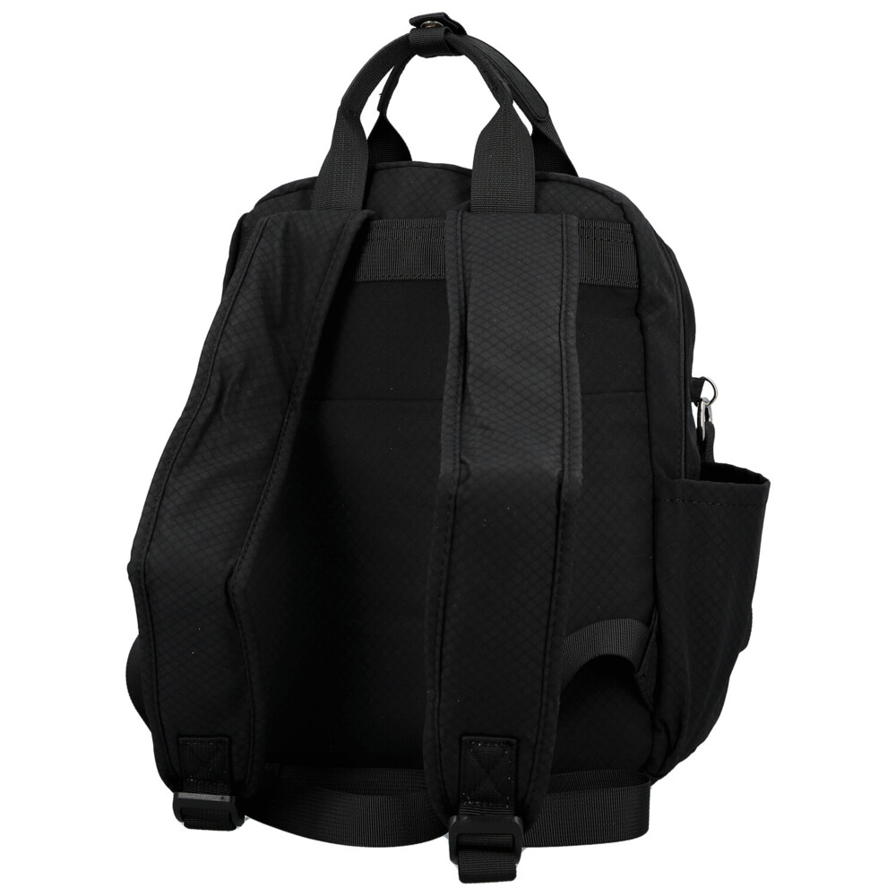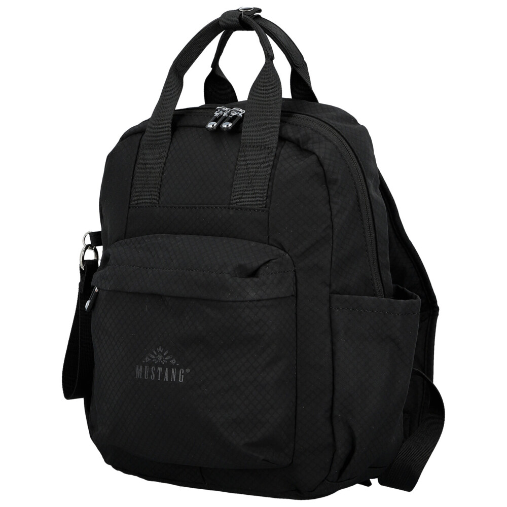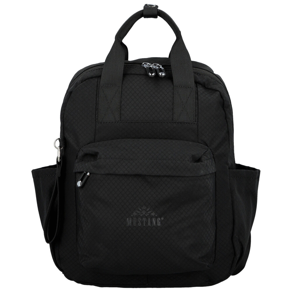 Menší batůžek Mustang z odolné textilie je praktickým a stylovým doplňkem pro každý den. Hlavní prostor na zip nabízí vnitřní postranní přihrádky – jednu na zip a jednu volnou – pro přehledné uložení potřebných drobností. Po bocích batohu se nacházejí dvě menší otevřené přihrádky, ideální například na kapesníčky nebo malé lahve.