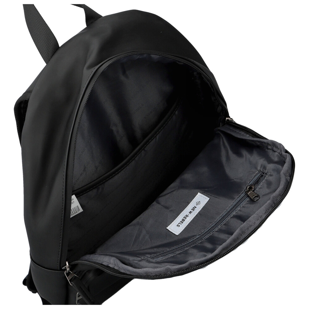 Kulatý pogumovaný batoh New Rebels spojuje originální design s maximální praktičností pro každodenní použití. Hlavní kapsa se zipem obsahuje bezpečnou přihrádku na laptop a menší zipovou kapsičku na drobnosti, které chcete mít po ruce. Na přední straně se nachází větší kapsa na zip pro snadný přístup k věcem, které potřebujete rychle vyndat. Batoh je členitě polstrovaný na zádech pro pohodlné nošení a navíc má skrytou kapsičku, vhodnou například na pas či jiné cennosti, která je dobře chráněná. Polstrované ramenní popruhy zajišťují komfort i při delším nošení a batoh lze bezpečně připnout na kufr pro snadné cestování. Stylový a funkční společník do města, na výlety i cesty. Objednejte ještě dnes a vyzkoušejte, vrátit jej můžete až do 30 dnů!