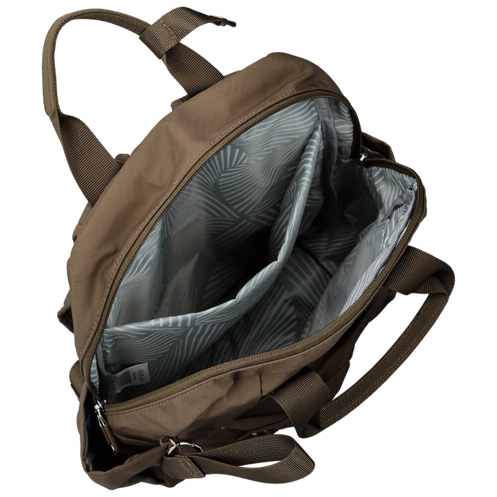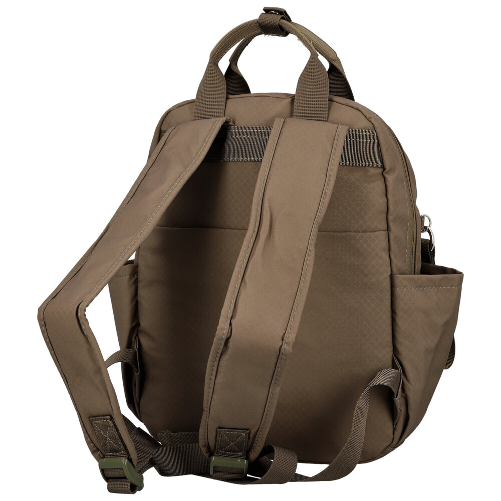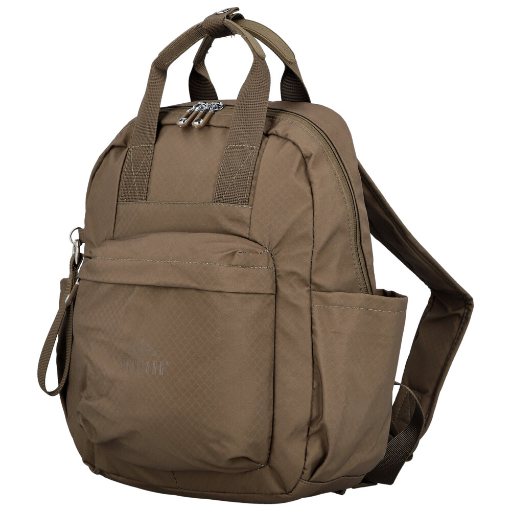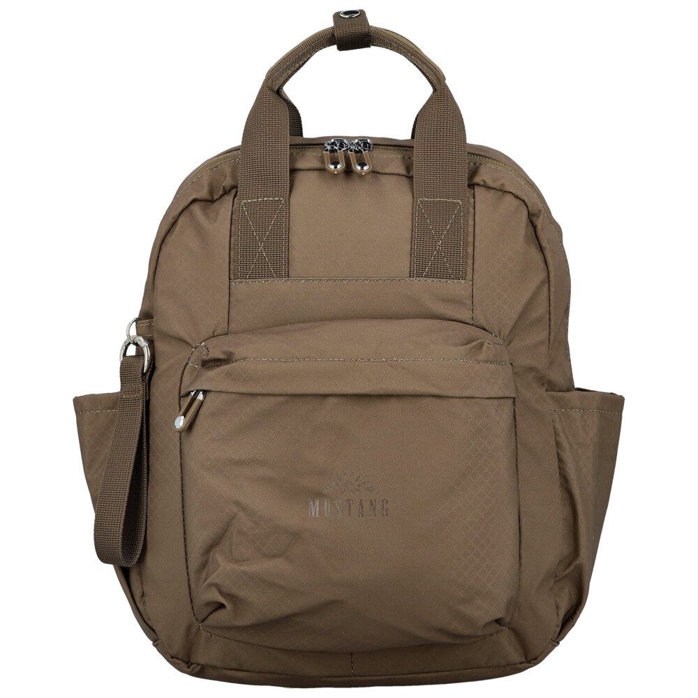 Menší batůžek Mustang z odolné textilie je praktickým a stylovým doplňkem pro každý den. Hlavní prostor na zip nabízí vnitřní postranní přihrádky – jednu na zip a jednu volnou – pro přehledné uložení potřebných drobností. Po bocích batohu se nacházejí dvě menší otevřené přihrádky, ideální například na kapesníčky nebo malé lahve.