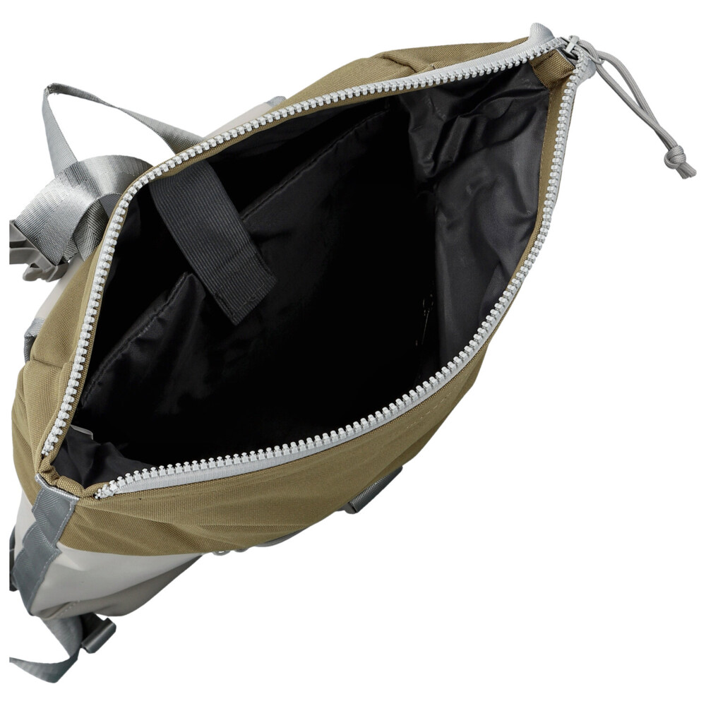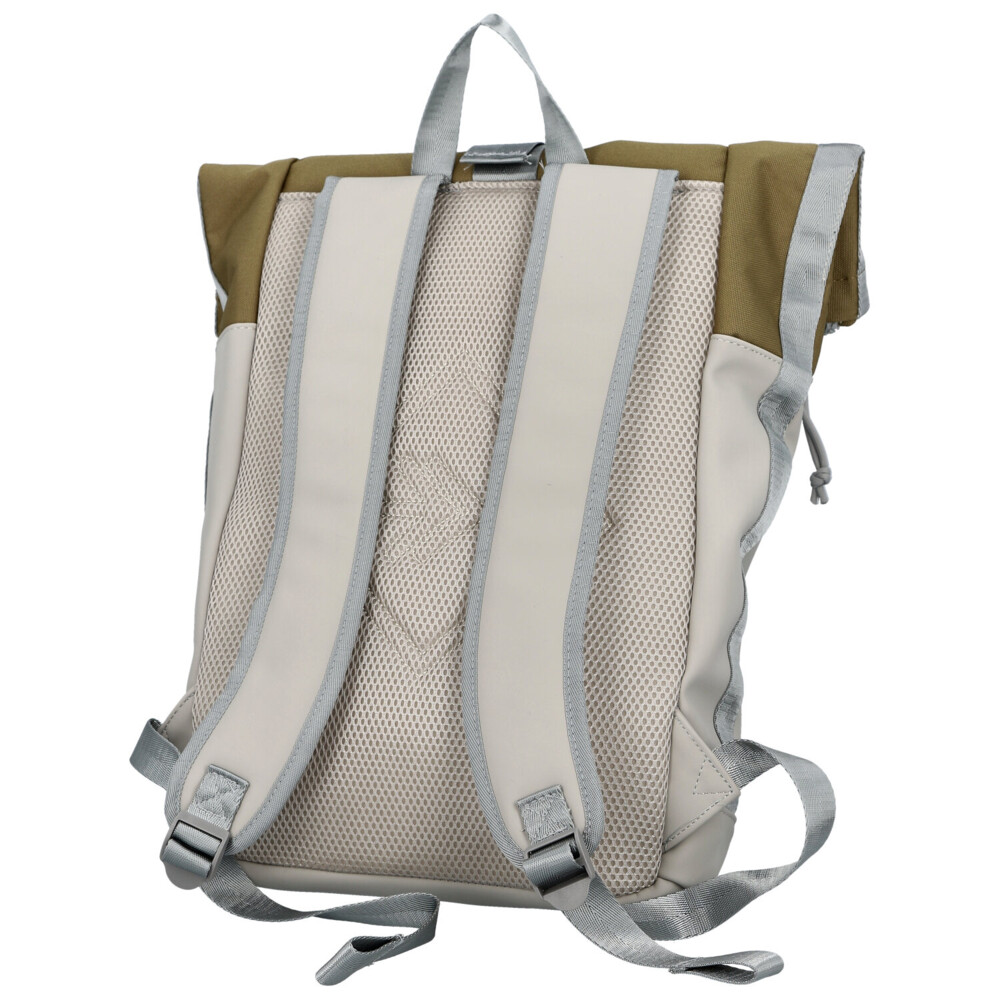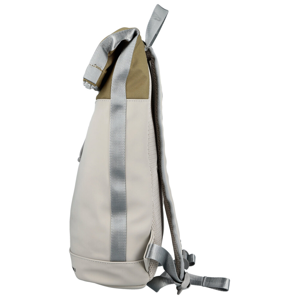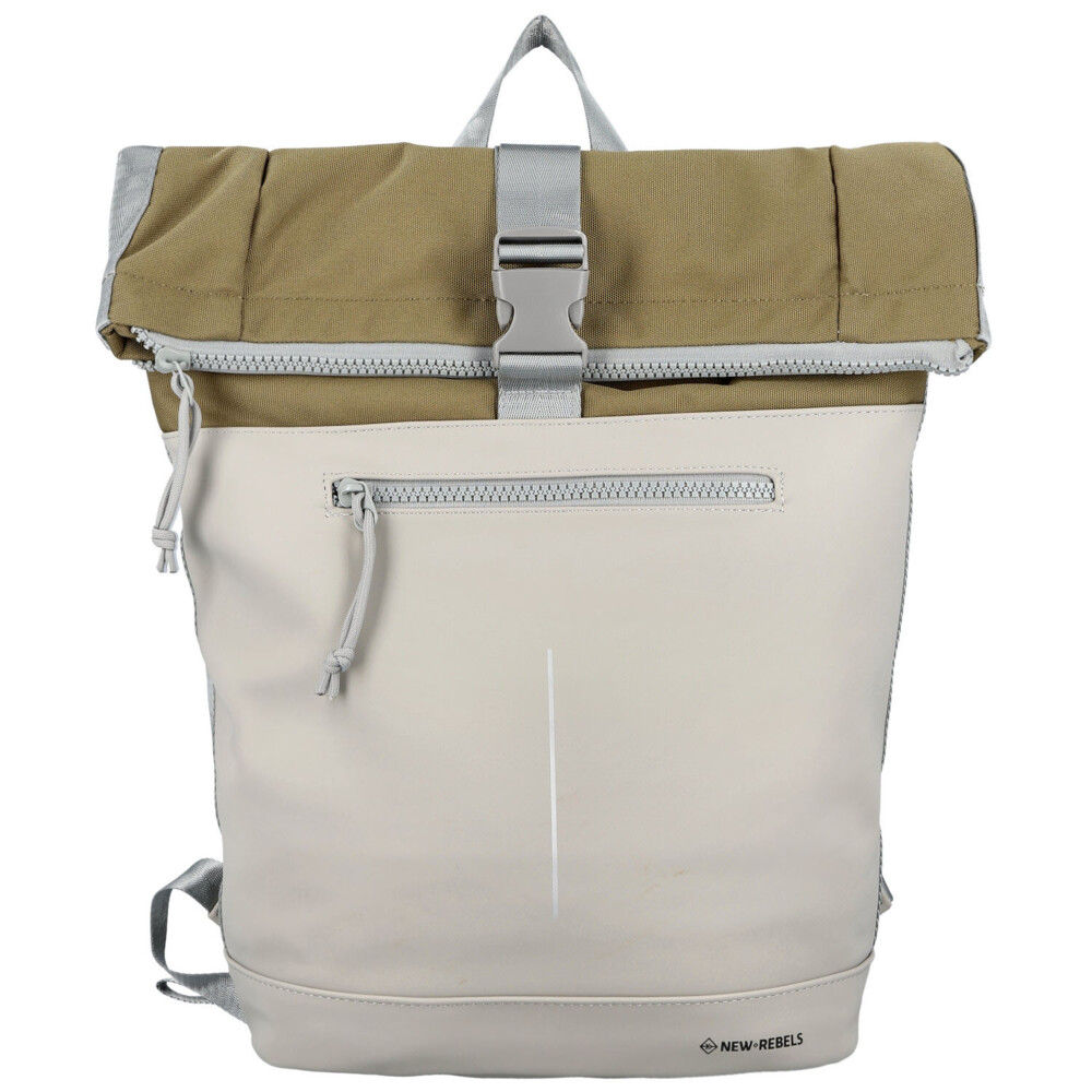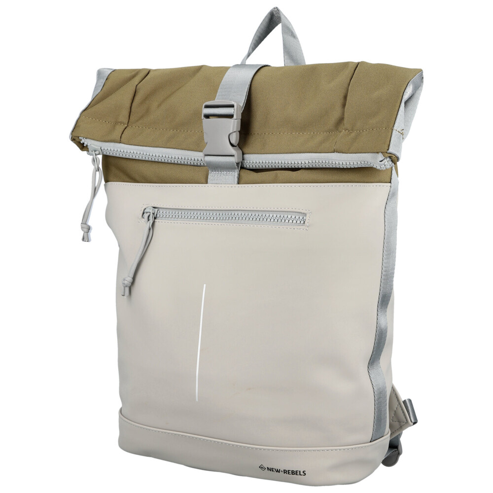 Stylový unisex roll-on batoh New Rebels v kombinaci pogumovaného těla a pevné textilie tentokrát přichází v hravém barevném provedení. Textilní klopa, boky batohu, zipy i olemování mají kontrastní barvy, které dodávají celému batohu moderní a výrazný vzhled. Rolovací vrchní část je z pevné látky, zatímco spodní tělo tvoří pogumovaný materiál odolný proti vlhkosti.