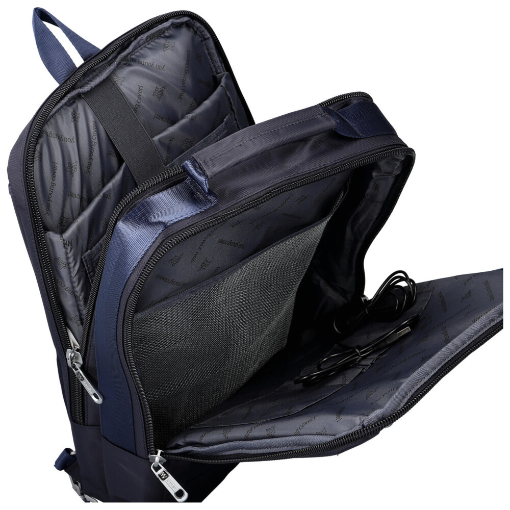Praktický textilní batoh s elegantním a funkčním designem. Nabízí dvě hlavní zipové kapsy, první s polstrovanou přihrádkou na notebook, druhou s organizérem na drobnosti. Přední stranu zdobí svislá kapsa na zip a kovové logo značky. Batoh je vybaven pevným uchem jak na vrchu, tak i na boku, takže jej můžete nosit i jako tašku. Polstrovaná záda a nastavitelné ramenní popruhy zajišťují pohodlné nošení. Kovové zipy ve stříbrné barvě podtrhují moderní vzhled. Vhodný pro práci, studium i cestování. Objednejte ještě dnes a vyzkoušejte, vrátit jej můžete až do 30 dnů!