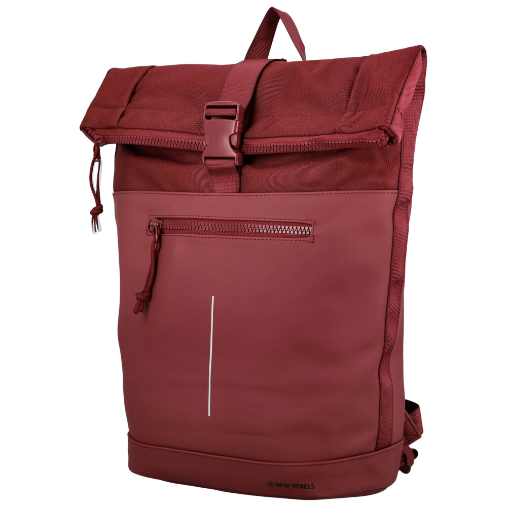 Unisex roll-on batoh New Rebels v kombinaci pogumovaného materiálu a pevné textilie nabízí moderní vzhled i vysokou odolnost pro každodenní použití. Rolovací část je z kvalitní textilie, zatímco tělo batohu tvoří pogumovaný materiál chránící obsah před vlhkostí. Pro zvýšení bezpečnosti je batoh doplněn tenkým reflexním prvkem, který zlepšuje viditelnost za šera.