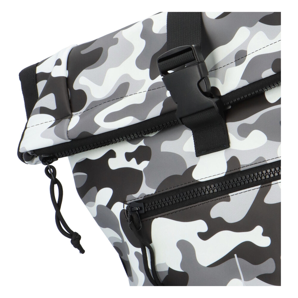 Velký maskáčový batoh, který lze využít při výletech, cestování, v práci i do školy. Tento kombinovaný fešák má černou, bílou i šedou barvu, je voděodolný, hladký a disponuje výstražným proužkem. Objednejte ještě dnes a vyzkoušejte, vrátit jej můžete až za 30 dnů! Batoh značky New Rebels se otevírá kapsou s velkým zipem. Lze jej také upnout přehnutím krátké klopy k plastové přezce. Na přední straně batohu je menší kapsa se zipem. Popruhy i zadní číst batohu jsou polstrované. Uvnitř hlavního prostoru, kam si lze uložit i notebook (max. 35 x 27 cm) a to do polstrované přihrádky, najdete další kapsu se zipem. Dno batohu má také výztuž.
