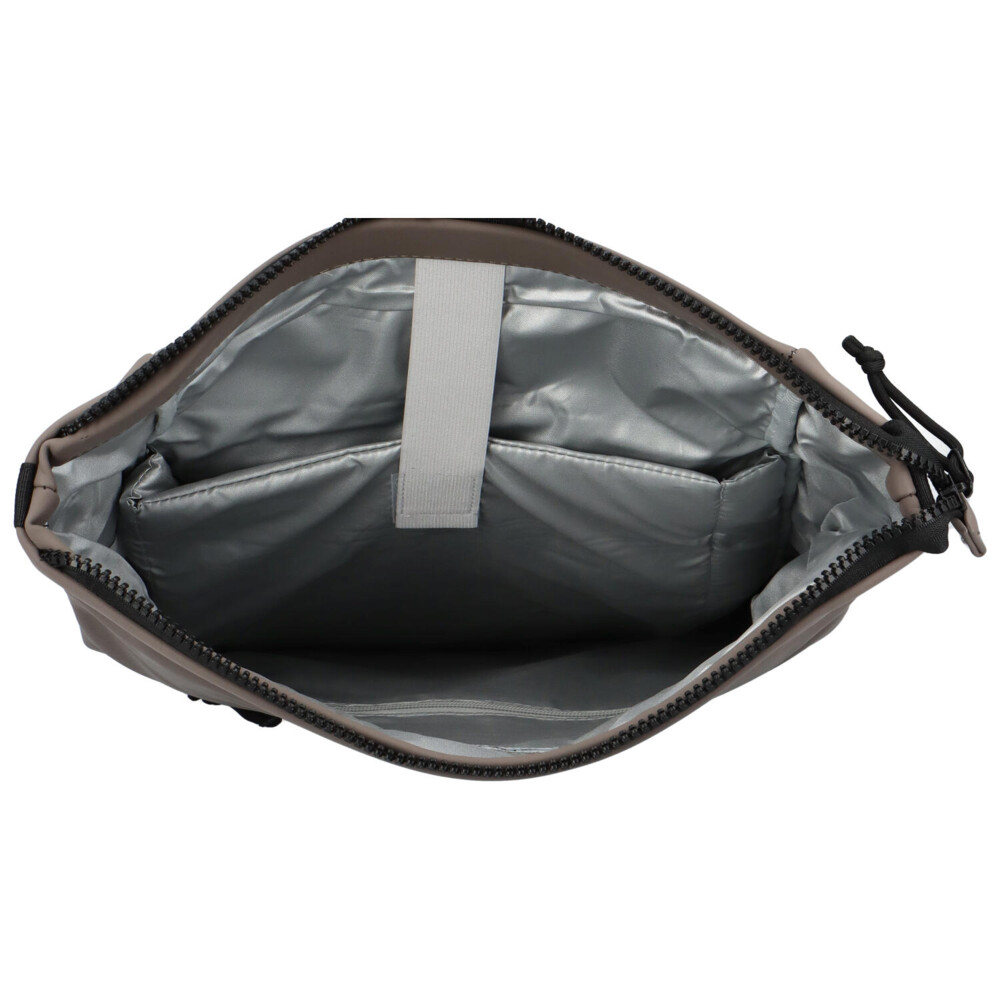 Velký tmavě béžový až taupe batoh, který lze využít při výletech, cestování, v práci i do školy. Tento kombinovaný fešák je voděodolný, hladký a disponuje výstražným proužkem. Objednejte ještě dnes a vyzkoušejte, vrátit jej můžete až za 30 dnů! Batoh značky New Rebels se otevírá kapsou s velkým zipem. Lze jej také upnout přehnutím krátké klopy k plastové přezce. Na přední straně batohu je menší kapsa se zipem. Popruhy i zadní číst batohu jsou polstrované. Uvnitř hlavního prostoru, kam si lze uložit i notebook (max. 35 x 27 cm) a to do polstrované přihrádky, najdete další kapsu se zipem. Dno batohu má také výztuž.