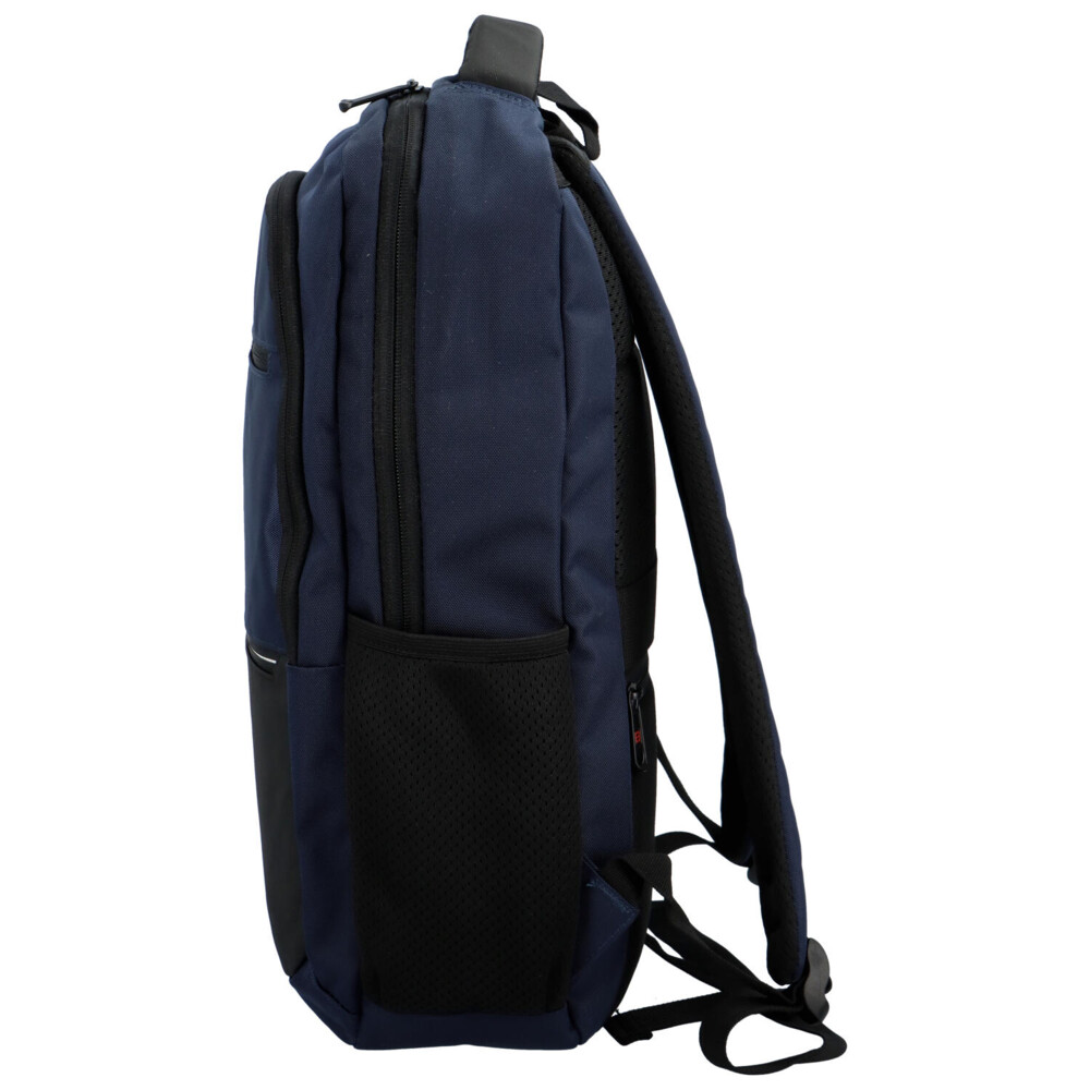 Velký modrý unisex batoh od značky Enrico Benetti je skvělým společníkem pro všechny vaše cesty. Je vybaven několika přihrádkami a kapsami pro jednodušší organizaci Vašich věcí. Objednejte ještě dnes a vyzkoušejte, vrátit jej můžete až za 30 dnů! Batoh má hlavní přihrádku s velkou kapacitou a je ideální pro uložení knih, tabletu, ale uložíte zde i 14" notebook (max. 40 x 25 cm). Na přední straně batohu najdete menší kapsy na zip, které jsou vhodné pro uložení cenností nebo menších předmětů, které si přejete udržet odděleně a bezpečně. Na bocích batoh nabízí síťové kapsy, které jsou skvělé pro rychlý přístup k láhvi s vodou, deštníku nebo dalšímu vybavení. Batoh má také polstrovaný zadní panel a nastavitelné ramenní popruhy a menší kapsičku na zádové straně.