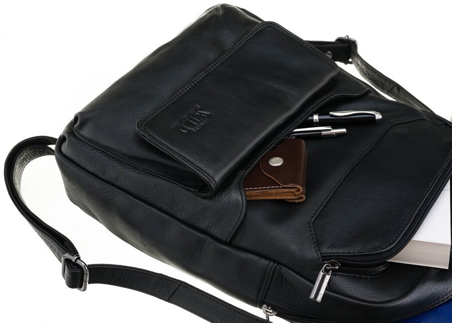 Pánský kožený batoh v elegantním černém provedení je ideální volbou do práce i na každodenní nošení. Batoh má praktické kapsičky. Hlavní prostorná kapsa na zip, vhodná pro dokumenty, tablet či osobní věci. Na přední straně je umístěna další zipová kapsa a před ní další kapsa s menší klopou na drobnosti. Batoh je vybaven nastavitelnými ramenními popruhy pro pohodlné nošení a kvalitním kováním, které podtrhuje jeho nadčasový a reprezentativní vzhled. Objednejte ještě dnes a vyzkoušejte, vrátit jej můžete až do 30 dnů!