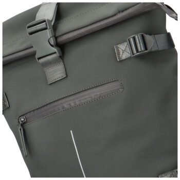 Velký pogumovaný batoh, který se bude skvěle hodit na cestování, na výlety, nebo do školy. Batoh má tmavě šedou barvu, je voděodolný, hladký a má výstražný proužek. Objednejte ještě dnes a vyzkoušejte, vrátit jej můžete až za 30 dnů! Novinka od značky New Rebels se otevírá kapsou s velkým zipem. Lze jej také upnout přehnutím klopy k plastové přezce. Na přední straně batohu je menší kapsa se zipem. Popruhy i zadní číst batohu jsou polstrované. Uvnitř hlavního prostoru, kam si můžete uložit i notebook (max. 34 x 27 cm) a to do polstrované přihrádky, najdete další kapsu se zipem. Batoh lze po bocích utáhnout přezkami. Zádová strana má schovanou malou kapsičku na zip. Dno batohu je vyztužené.