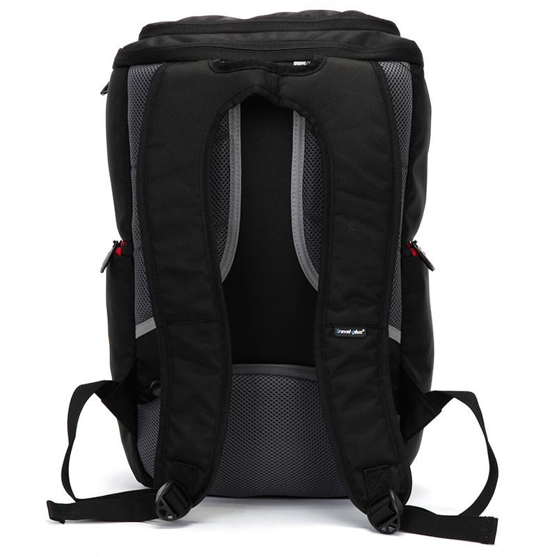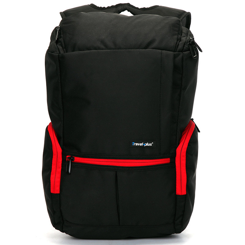 Značka Travel plus doporučuje řadu nových cestovních batohů a to nejen kvůli výbornému polstrování a prostoru, ale i díky kvalitě za nízkou cenu. Porovnejte batohy se značkou TP a na své cesty si vyberte ten správný! Například tento 0069 černé barvy. Na designu přidává pár červených detailů. Přední strana nabízí tři střední kapsy na zip. Boční kapsy jsou také se zipy, uloží cca 0,5 L láhve. Další střední kapsu naleznete na zadní straně v jednom ze zádových polstrování, ideální pro doklady a peněženku. Hlavní kapsa má duální zip, prostor se otevírá k zadní části produktu a nabízí dvě síťové kapsy se zipem a další kapsy na notebook (max. 29 x 30 cm) a tablet (max. 22 x 25 cm). Obě kapsy jsou přepásány suchým zipem, aby nedošlo k vypadnutí cenností. Ucho pro manipulaci v ruce je součástí nastavitelných popruhů. Objednejte ještě dnes a vyzkoušejte, vrátit ji můžete až za 30 dnů! Zvolte si to nejlepší na Vaše cesty!