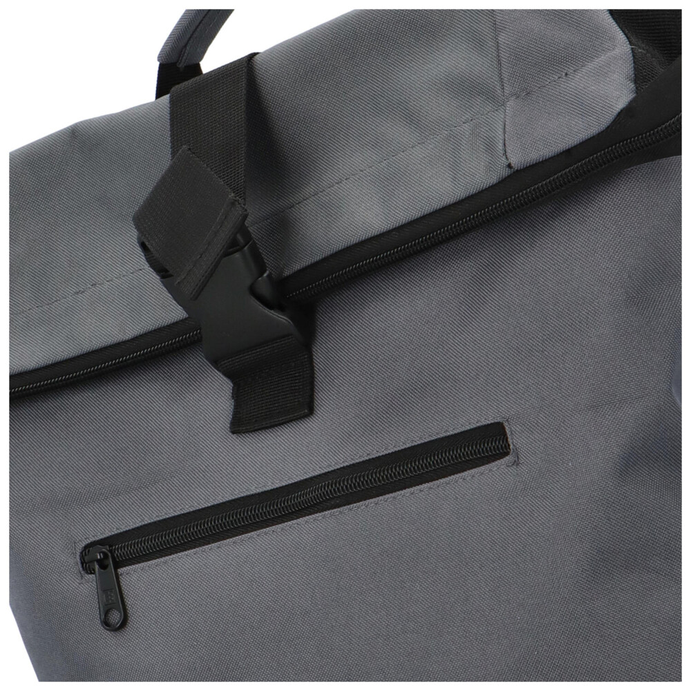 Velký šedý rolovací batoh, který lze využít při výletech, cestování, v práci i do školy. Objednejte ještě dnes a vyzkoušejte, vrátit jej můžete až za 30 dnů! Hlavní kapsa se otevírá velkým zipem. Lze jej také upnout přehnutím krátké klopy k plastové přezce. Na přední straně batohu je menší kapsa se zipem. Uvnitř hlavního prostoru, si lze do postranní přihrádky uložit i notebook (max. 32 x 25 cm). Dno batohu je vyztužené.