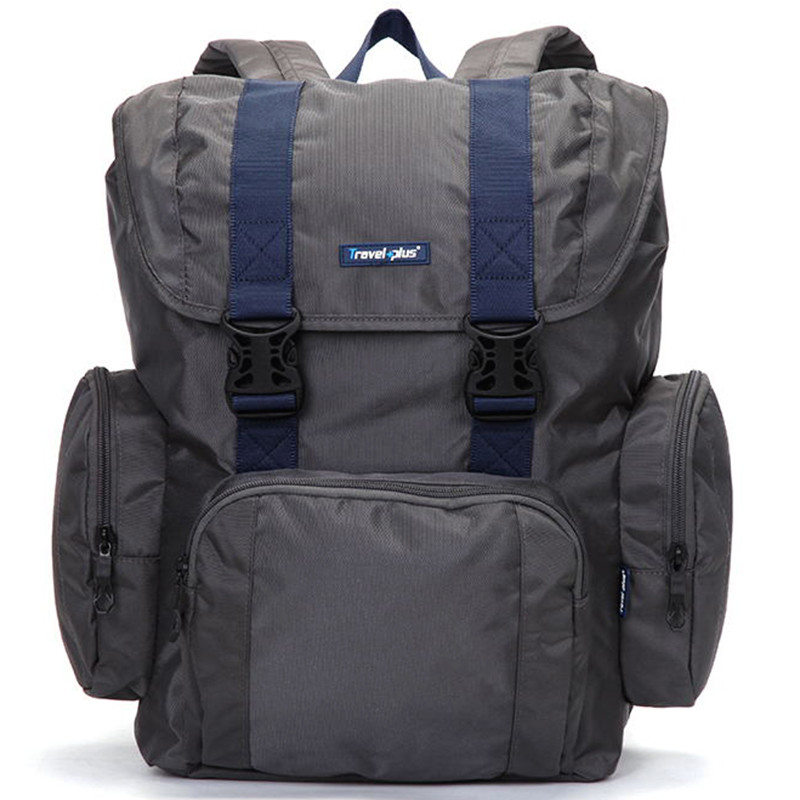 Značka Travel plus doporučuje řadu nových cestovních batohů - dobrá kvalita za nízkou cenu. Porovnejte batohy se značkou TP a na své cesty si vyberte ten správný! Tento velký šedý batoh s tmavě modrými detaily Vás jistě nezklame. Na cesty si můžete přibalit i menší notebook nebo tablet (max. 27 x 31 cm). Pokud Vás potká déšť nevadí, o své věci se bát nemusíte.. kvalitním nylonem nepronikne ani jedna kapička. Dobře Vám poslouží i jako batoh na sportovní věci. Klopa batohu se zapíná dvěma klipsy a jeho hlavní kapsa se stahuje šňůrkou. Uvnitř je ještě jedna kapsa se zipem na cennosti a osobní věci. Další kapsy naleznete na přední straně. Po bocích jsou dvě kapsy se zipy. Záda i popruhy jsou jemně polstrované. Objednejte ještě dnes a vyzkoušejte, vrátit ji můžete až za 30 dnů! Zvolte si to nejlepší na Vaše cesty!