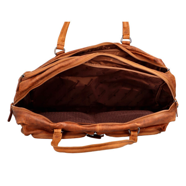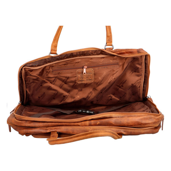 Tato kvalitní taška bude ideální společník na pracovní cesty i víkendové pobyty. Luxusní cestovní taška z pravé kůže s vintage nádechem je navržena s důrazem na kvalitu, praktičnost a styl. Dominují jí dvě masivní ucha pro pohodlné nošení v ruce a odnímatelný ramenní popruh s kovovým zakončením pro větší komfort při delším cestování. Hlavní prostor se otevírá zipem a je ideální na oblečení, notebook i další potřeby. Další kapsa je užší, ale také do ní dáte notebook a další potřebné věci. Drobnosti rozdělíte do menších kapsiček uvnitř. Přední stranu zdobí logo značky. Zadní strana nabízí zipové kapsy pro snadný přístup k drobnostem. Hodí se jako příruční zavazadlo do letadla, pracovní taška nebo víkendový kufřík. Objednejte ještě dnes a vyzkoušejte, vrátit ji můžete až do 30 dnů!