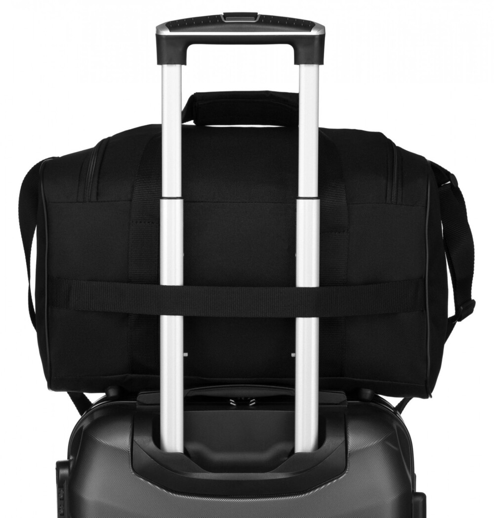 Praktická cestovní taška v černé barvě je vyrobena z odolného polyesteru, který zajišťuje pevnost a dlouhou životnost. Na přední straně se nachází logo značky a menší zipová kapsa pro rychlý přístup k drobnostem. Taška disponuje hlavní velkou kapsou na zip, která nabízí dostatek prostoru na oblečení i cestovní nezbytnosti. Pro pohodlné nošení je vybavena nastavitelným dlouhým popruhem a pevnými uchy do ruky. Díky zadnímu textilnímu pásu lze tašku snadno uchytit na madlo kufru. Spodní část tašky je chráněna plastovými nožkami, které zabraňují jejímu poškození, a celkový vzhled doplňuje černé kování, ladící s moderním a univerzálním designem. Objednejte ještě dnes a vyzkoušejte, vrátit ji můžete až do 30 dnů!