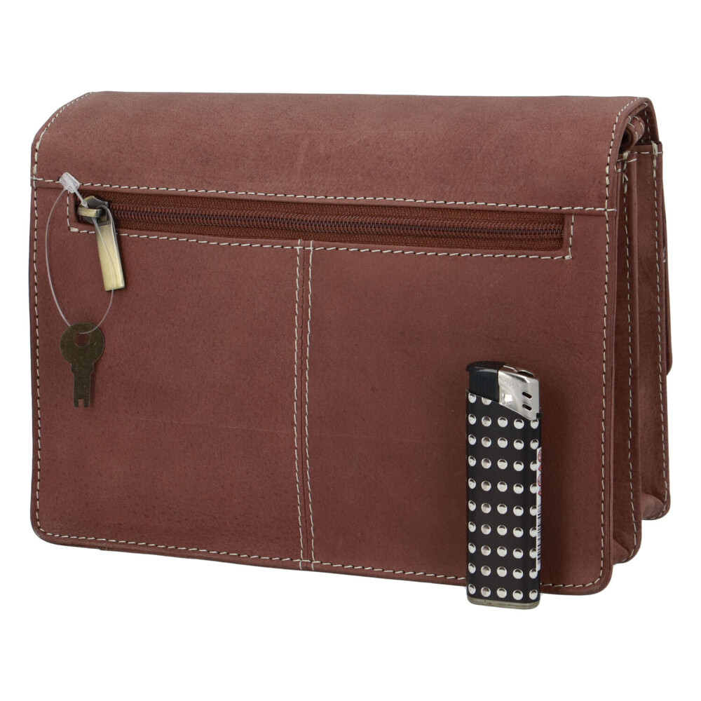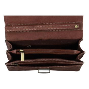 Pánské, hnědé, broušené, kožené etue s klopou. Můžete si určit samy, jestli chcete nosit tašku pouze v ruce, nebo využijete poutko a nasadíte si jej na ruku. Etue je velice jemné, měkčí a příjemné na dotek. Nechybí mu přihrádky na peněženku, klíče či doklady. Využít také lze přihrádek na vizitky, kreditní karty, popřípadě bankovky do kapsy na zip. Nechybí ani zadní kapsa se zipem.