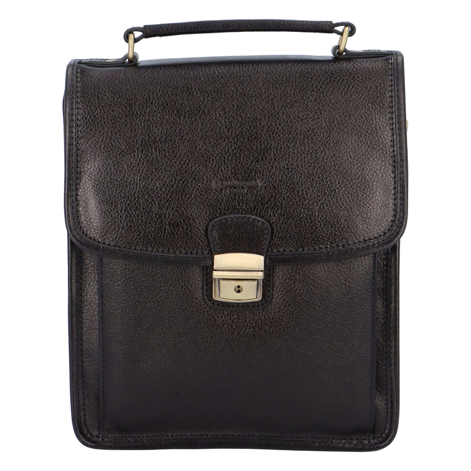 Pánské, černé, kožené etue Hexagona s klopou na zámeček. Mít velký prostor na doklady a další potřeby je důležité. Spokojenost Vám zaručí díky dvěma hlavním kapsám, meziprostoru s kapsou na zip a předním volným přihrádkám v podobě organizéru. Samozřejmostí jsou kapsy se zipy na zadní straně etue. Etue pojme peněženku, telefon, klíče, diář a další nezbytné věci. Součástí je kožený odnímatelný popruh, díky kterému můžete nosit etue i přes rameno, navíc je zde kvalitní kožené polstrování.
