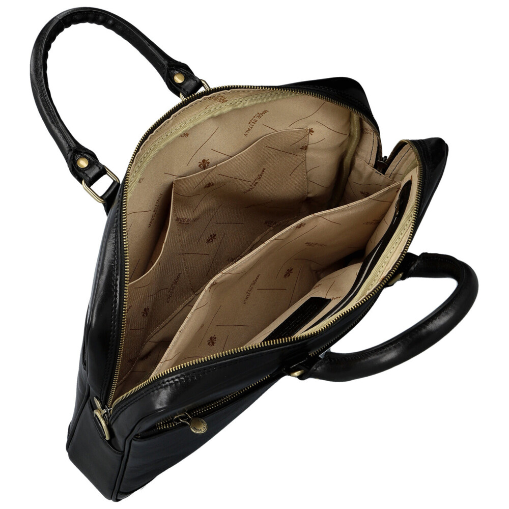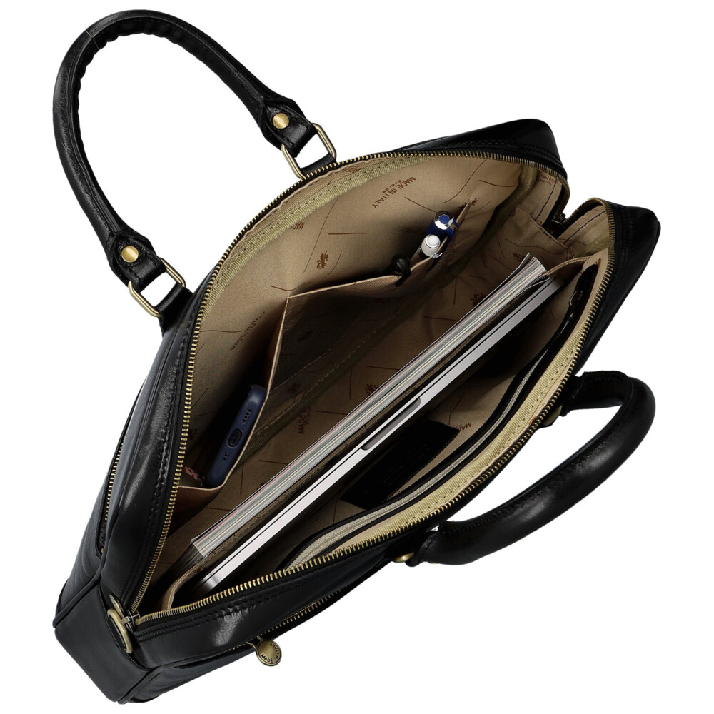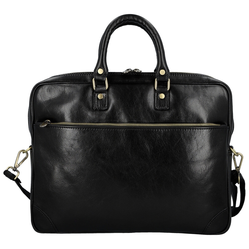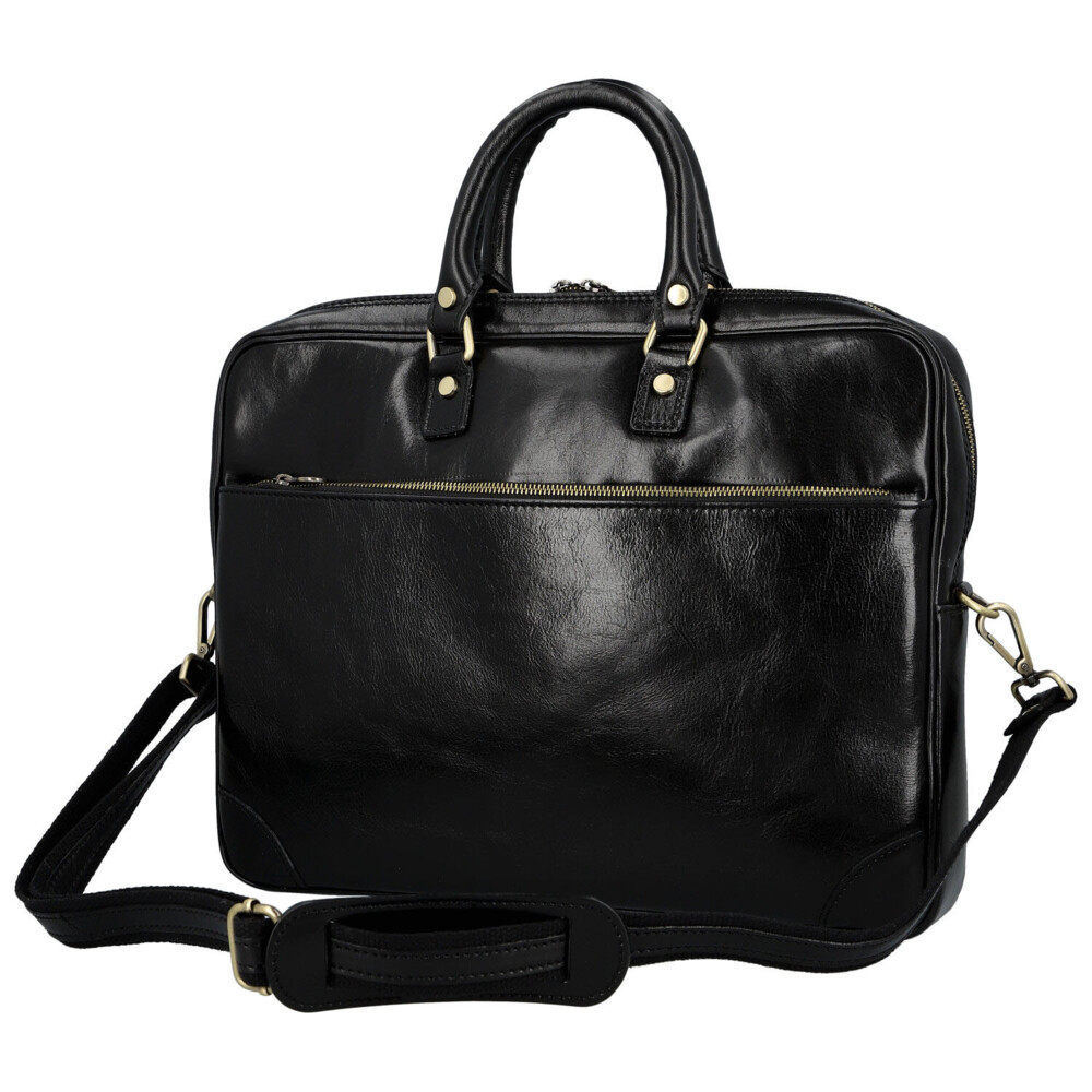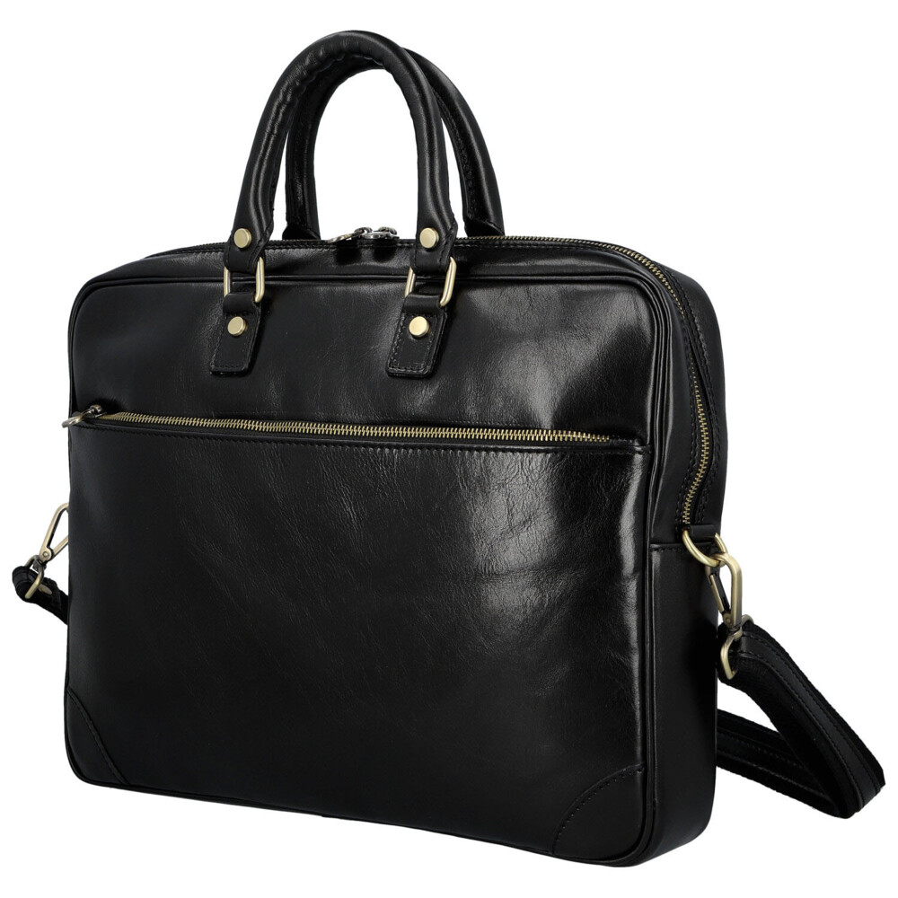 Elegantní síla v každém detailu. Tato kožená business taška je stvořená pro dny, kdy potřebujete mít přehled, styl i tempo. Hladký kožený povrch a čistý design působí sebevědomě a profesionálně, bez zbytečných okras. Hlavní kapsa na zip nabízí přehledný řešený vnitřní prostor s kapsičkami v podšívce, které udrží dokumenty i pracovní nezbytnosti perfektně uspořádané. Praktické velké zipové kapsy v přední i zadní části jsou ideální pro věci, které chcete mít ihned po ruce. Pevná ucha skvěle padnou do ruky a nastavitelný ramenní popruh zajistí pohodlí i při celodenním nošení. Mosazné kování dodává tašce moderní business charakter s nádechem luxusu. Taška, která drží krok s vašimi cíli. Objednejte ještě dnes a vyzkoušejte, vrátit ji můžete až za 30 dnů!