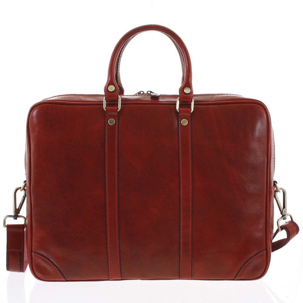 Luxusní business kožená taška Delami. Elegantní unisex taška na notebook a papíry střední velikosti. Kvalitní zpracování italské třísloviny (svrchní kůže) s příjemnou vůní. Brašna je příjemně úzká, na přední i zadní straně jsou našity kožené proužky pro oživení vzhledu, velice dobře se nosí jak v ruce tak i přes rameno. Součástí je odnímatelný nastavitelný popruh s koženým páskem. Uvnitř jsou přihrádky na mobil, tužky, vizitky a polstrovaná pro notebook. Do hlavní kapsy se vleze notebook o max. rozměrech 37 x 28 cm. Drobné škrábance na kůži nejsou na závadu a nemohou být předmětem reklamace. Objednejte ještě dnes a vyzkoušejte, vrátit ji můžete až za 30 dnů!