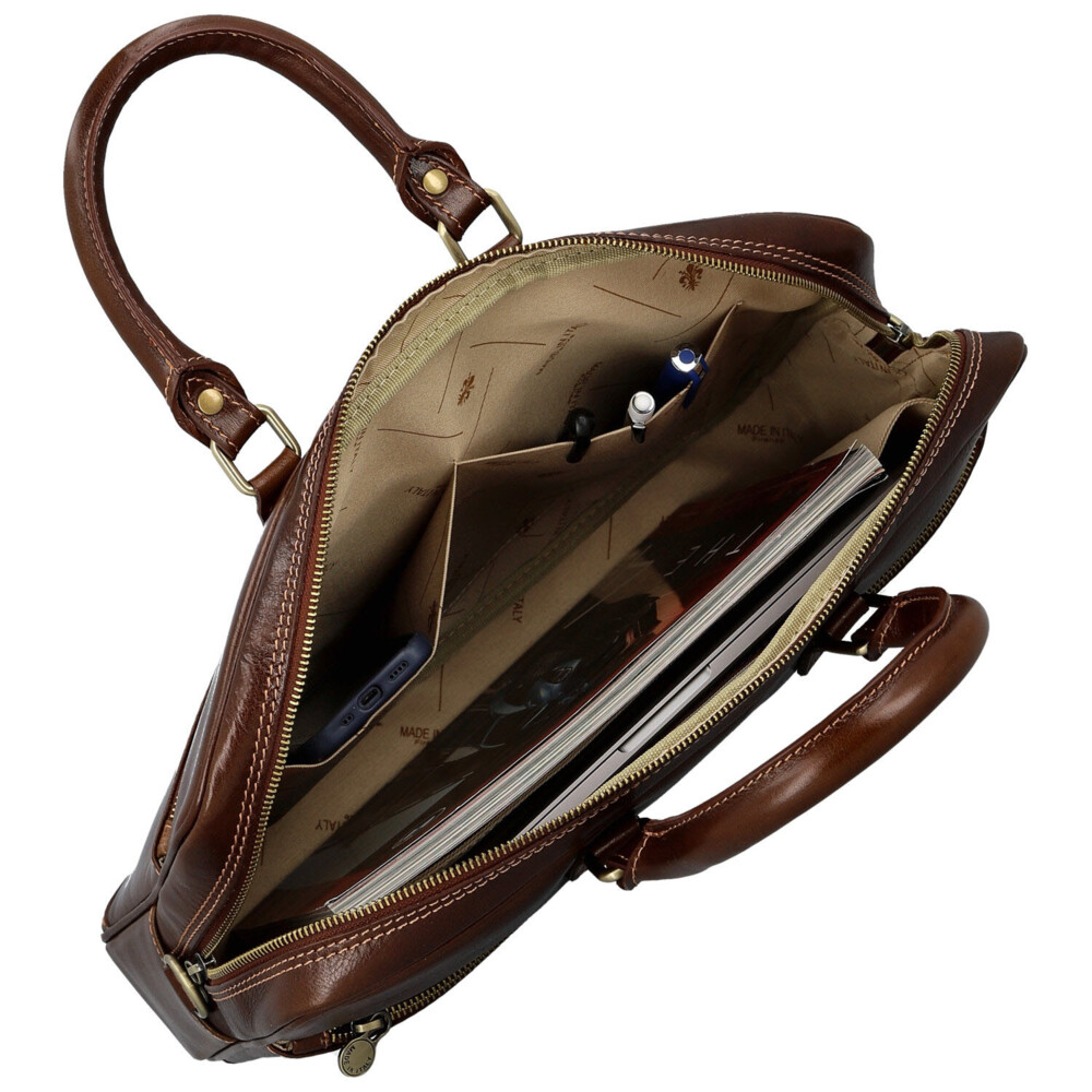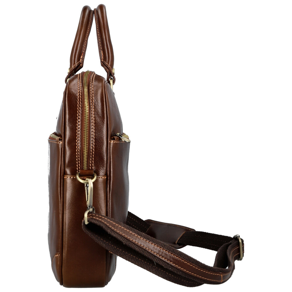 Kožená business taška hnědá - Delami Vera Pelle Evarist