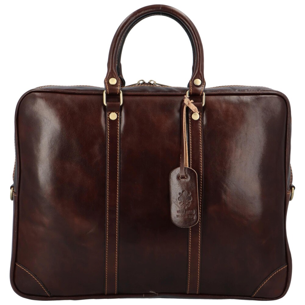 Kožená business taška tmavě hnědá - Delami Vera Pelle Paolo