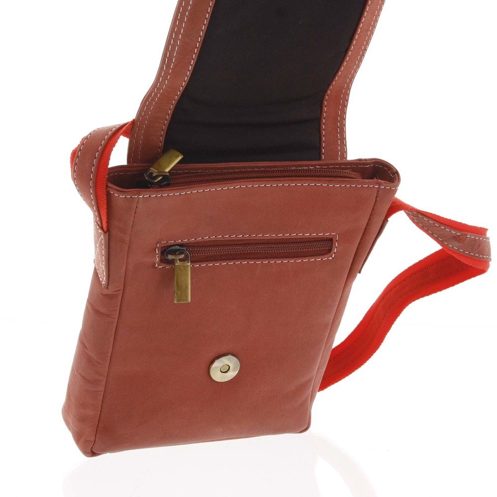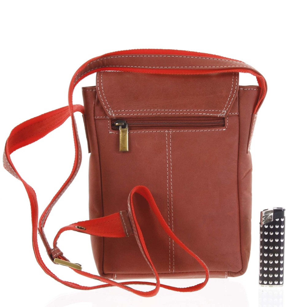 Kožená pánská crossbody taška na doklady červená broušená 0213