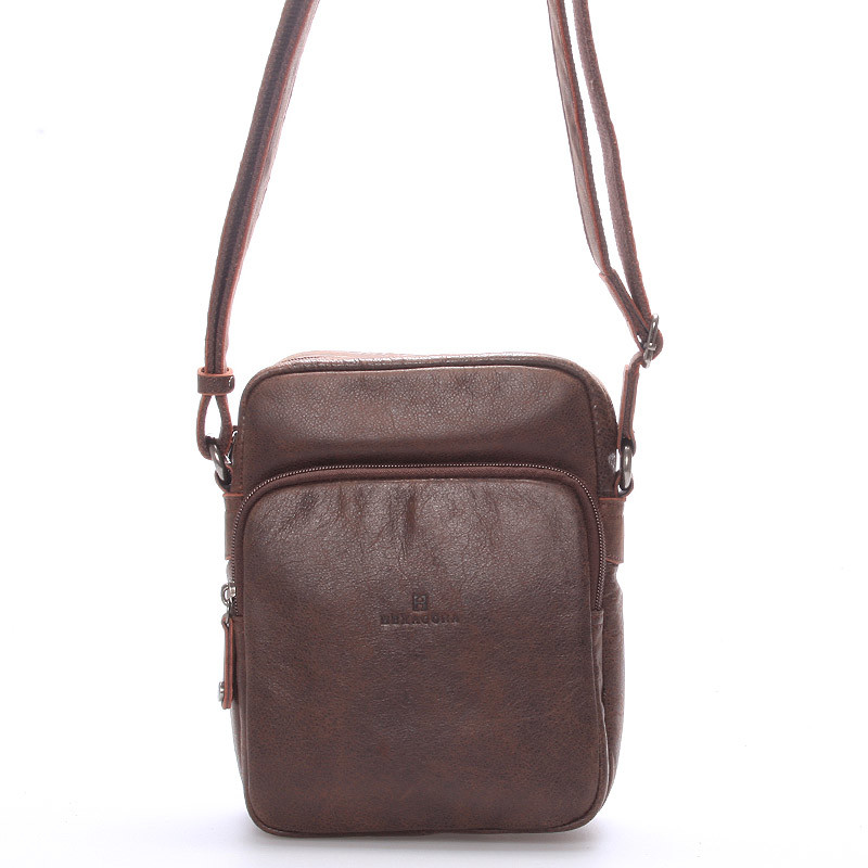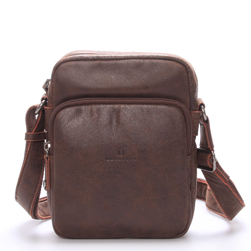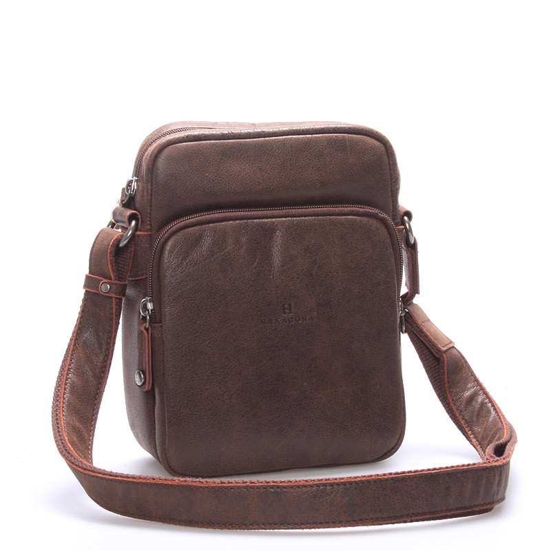 Luxusní pánská kožená taška přes rameno hnědá - Hexagona Carlos
