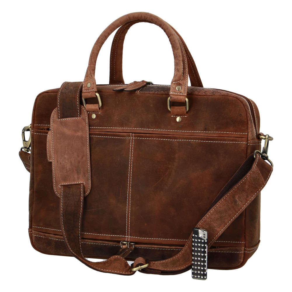 Camel pánská brašna z hovězí kůže? Vyberte si z nové kolekce pánských kožených tašek a brašen značky Diviley. Taška je z kvalitní broušené kůže, která získá časem originální patinu. Masivní ucha udrží i vyšší zátěž, zezadu můžete skrze tašku provléknout madlo cestovního kufru. Na přední straně je kapsa na zip, uvnitř jsou také menší kapsičky a hlavně polstrovaná kapsa na notebook s maximálním rozměrem 13,3" (např. MacBook Air) nebo 25 x 33 cm. Opravdu povedený kousek pánské tašky! Popruh je odnímatelný, v kombinaci kůže a textilu, prošívaný, s maximální délkou cca 146 cm. Objednejte ještě dnes a vyzkoušejte, vrátit ji můžete až za 30 dnů!