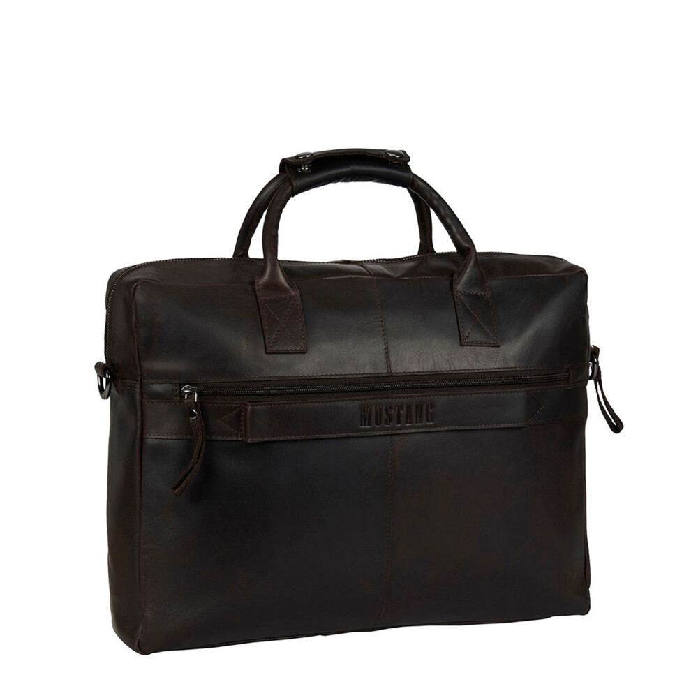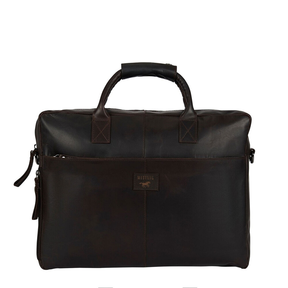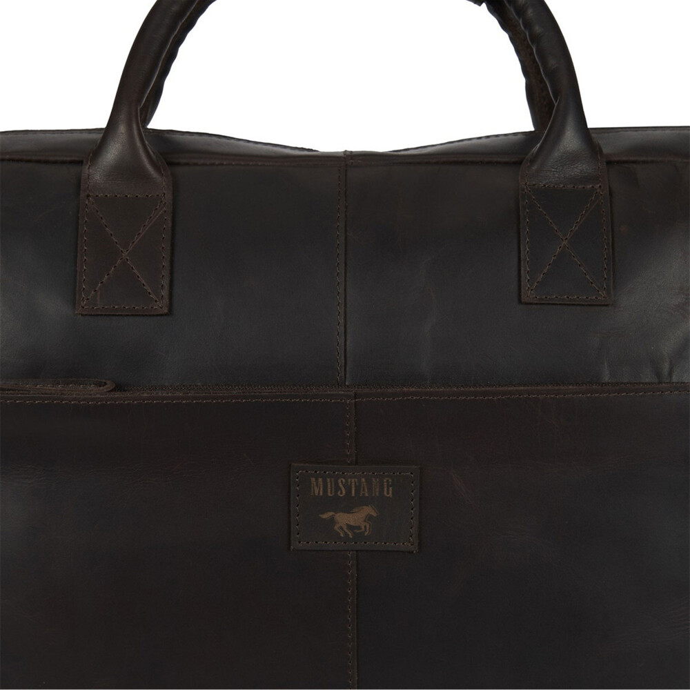 Tato kožená pánská brašna na notebook, od značky Mustang, je navržena pro moderního muže, který klade důraz na kvalitu a detail. Jemná textura tmavě hnědé kůže působí luxusně a s časem získává přirozenou patinu, která dodává tašce osobitý charakter. Díky prostornému hlavnímu oddílu bezpečně uložíte notebook (až 14"), dokumenty formátu A4, diář i další pracovní nezbytnosti. Přední kapsa na zip je ideální pro telefon, peněženku nebo klíče. Nechybí zde kapsa se zipem ani na zadní straně, ke které se přidává kožený pás s logem značky na upevnění při cestování na madlu kufru. Samozřejmostí jsou menší kapsičky uvnitř brašny. Objednejte ještě dnes a vyzkoušejte, vrátit ji můžete až za 30 dnů! Precizní detaily dělají z této tašky stylový doplněk, který podtrhne váš profesionální image.