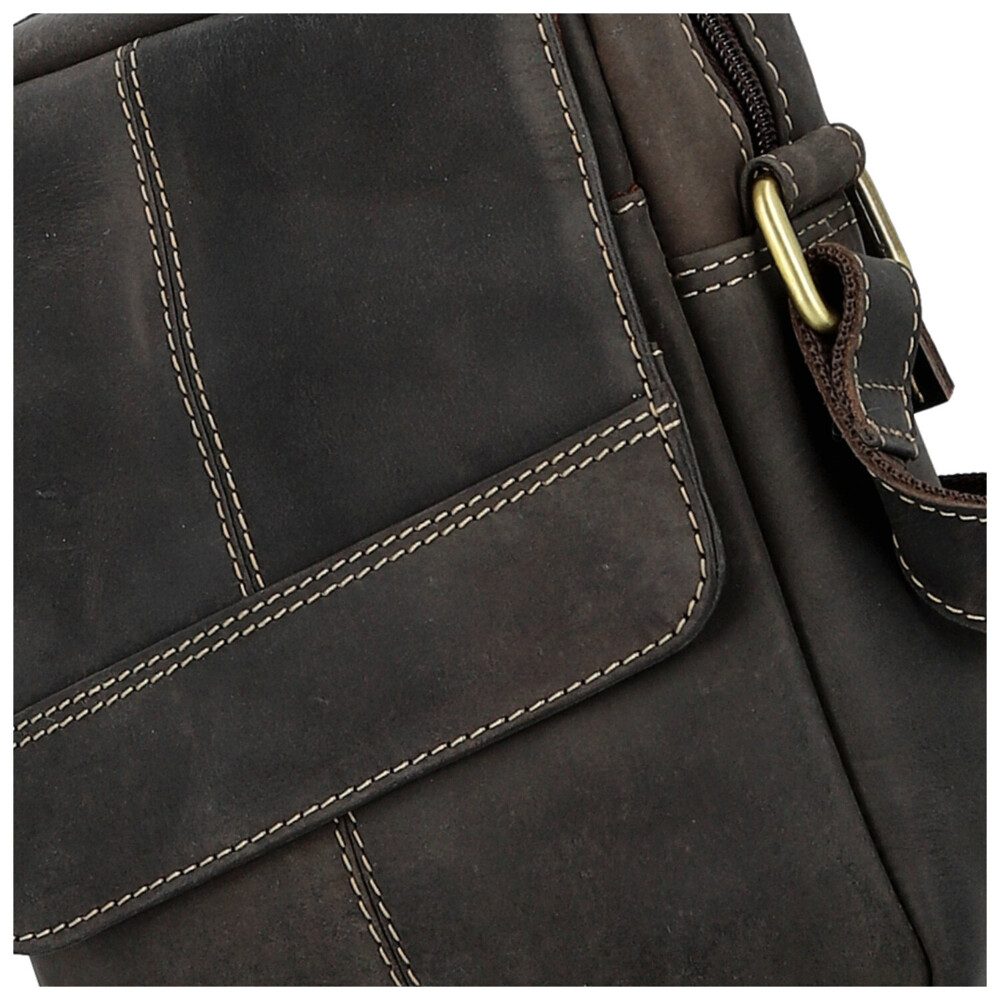 Stylová pánská crossbody taška Sendi Design z kvalitní broušené kůže nabízí moderní provedení s klopou lehce střiženou do šikma, zdobenou dekorativním prošitím uprostřed. Hlavní prostor se otevírá zipem na horní straně tašky a uvnitř najdete praktické postranní přihrádky pro přehledné uložení drobností.