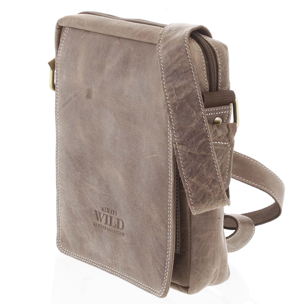 Pánská kožená crossbody taška taupe - WILD Yander
