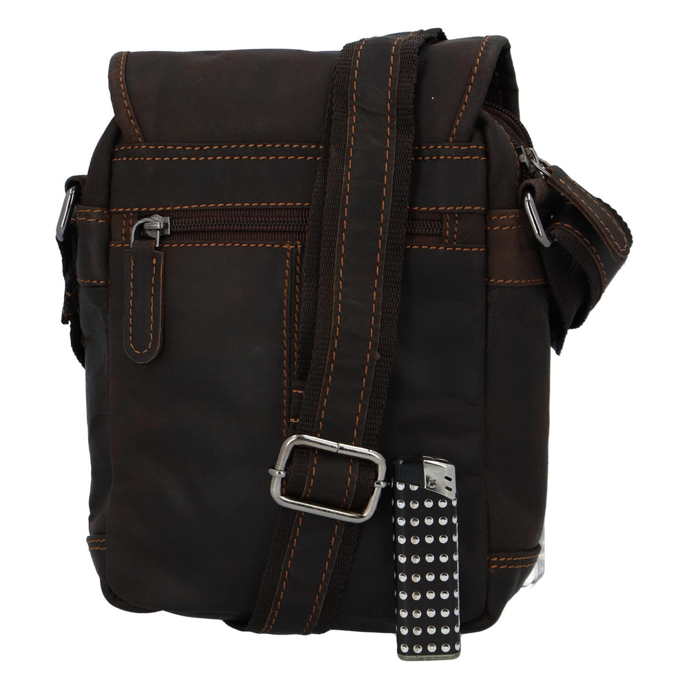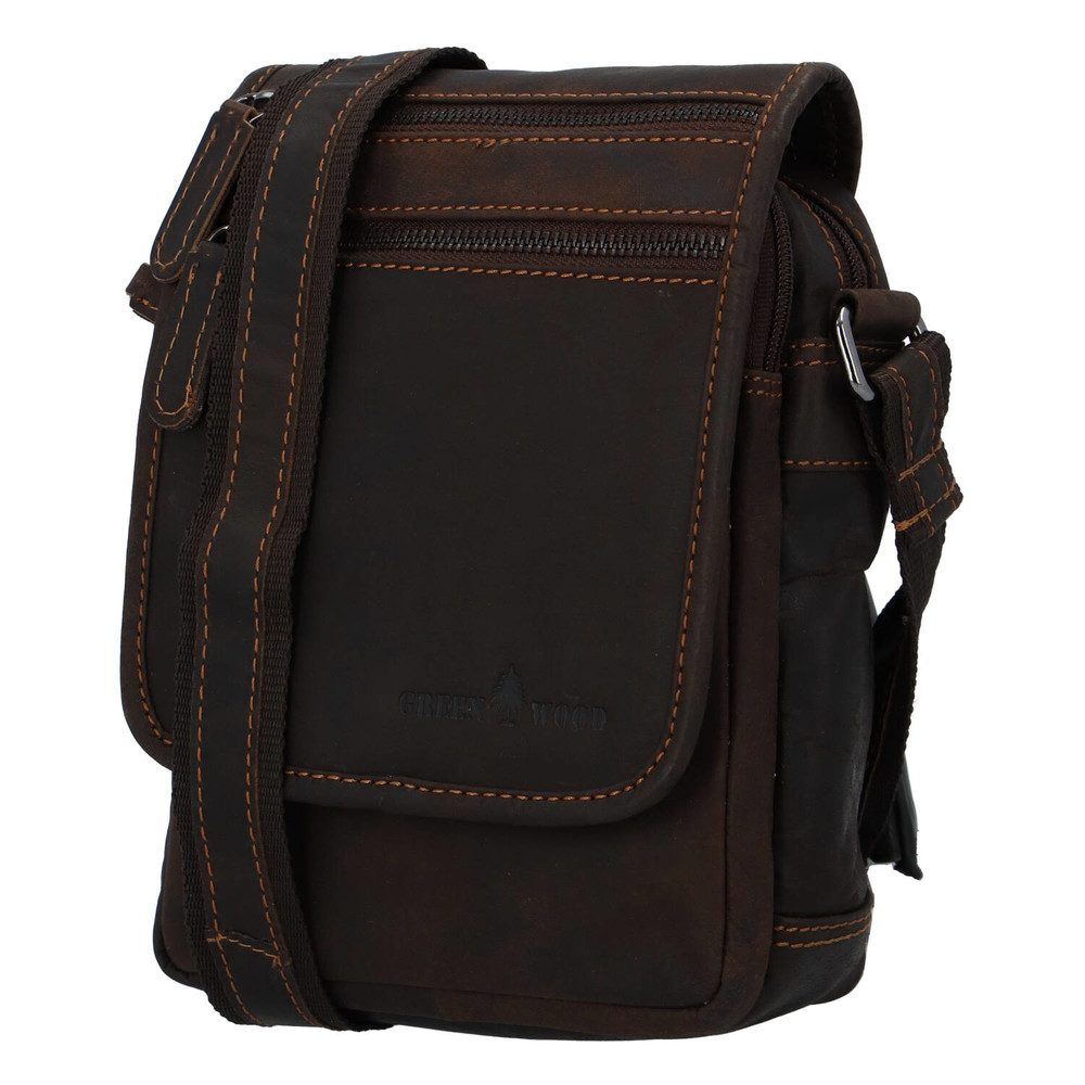 Pánská kožená crossbody taška tmavě hnědá - Greenwood Vamos