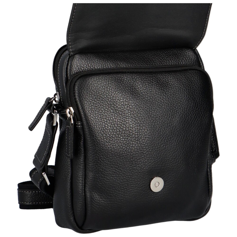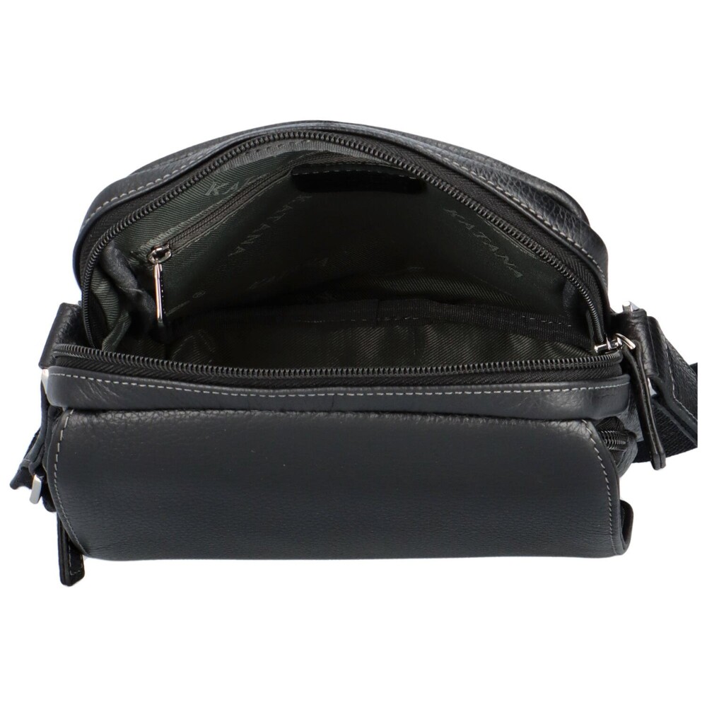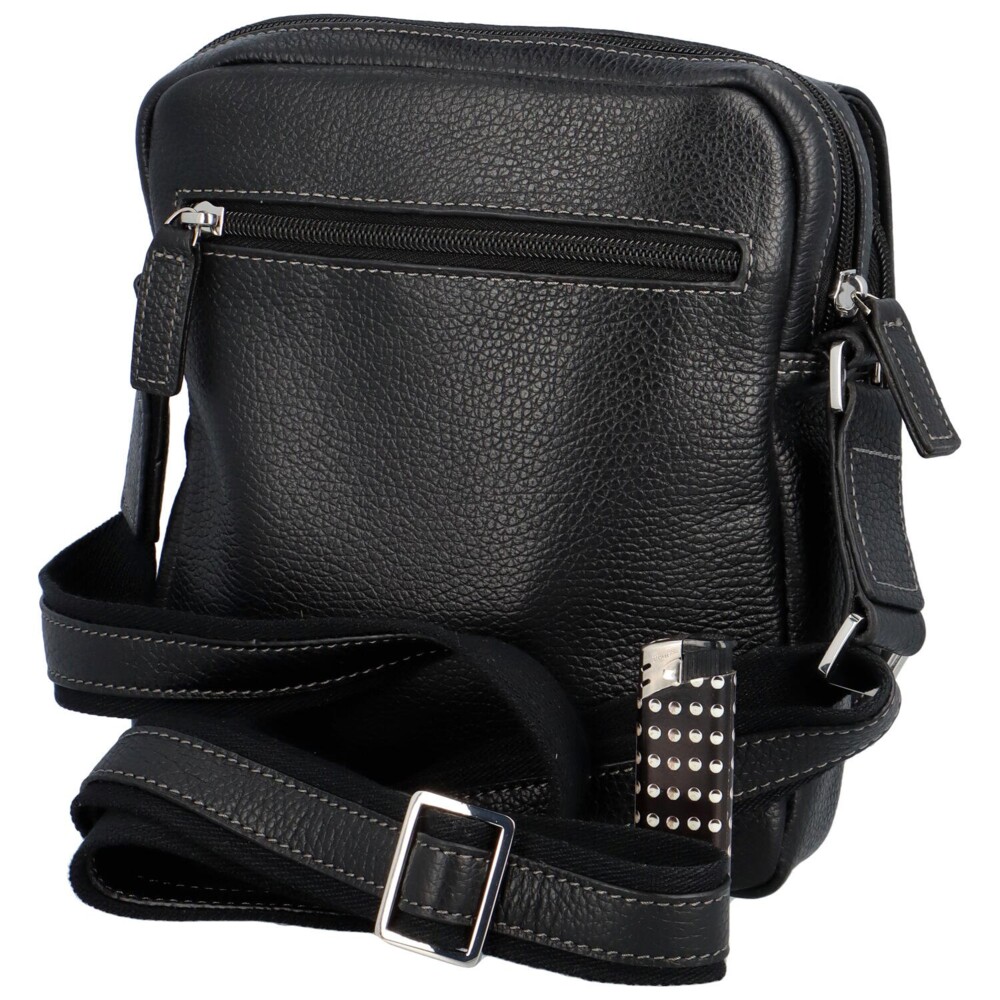 Střední pánská crossbody je skvělou volbou, pokud potřebujete své věci po ruce a nechcete s sebou vláčet objemné tašky. Francouzská značka Katana posunula tento model o úroveň výš, díky výběru kvalitní kůže v černé barvě a elegantnímu designu. Vznikla tak povedená pánská taška, se kterou zanecháte dojem. Objednejte ještě dnes a vyzkoušejte, vrátit ji můžete do 30 dnů! Kůže nechává vyniknout svému přirozenému povrchu, který vyzdvihuje i decentní ozdobné prošití. Klopa chrání kapsu na přední straně a zajistíte ji magnetickým drukem. Hlavní úložný prostor uzavřete zipem, uvnitř najdete kapsu všitou do podšívky. Poslední prostor je vám k dispozici na zadní straně crossbody tašky. Odolný látkový popruh je zpevněn našitým koženým pruhem.